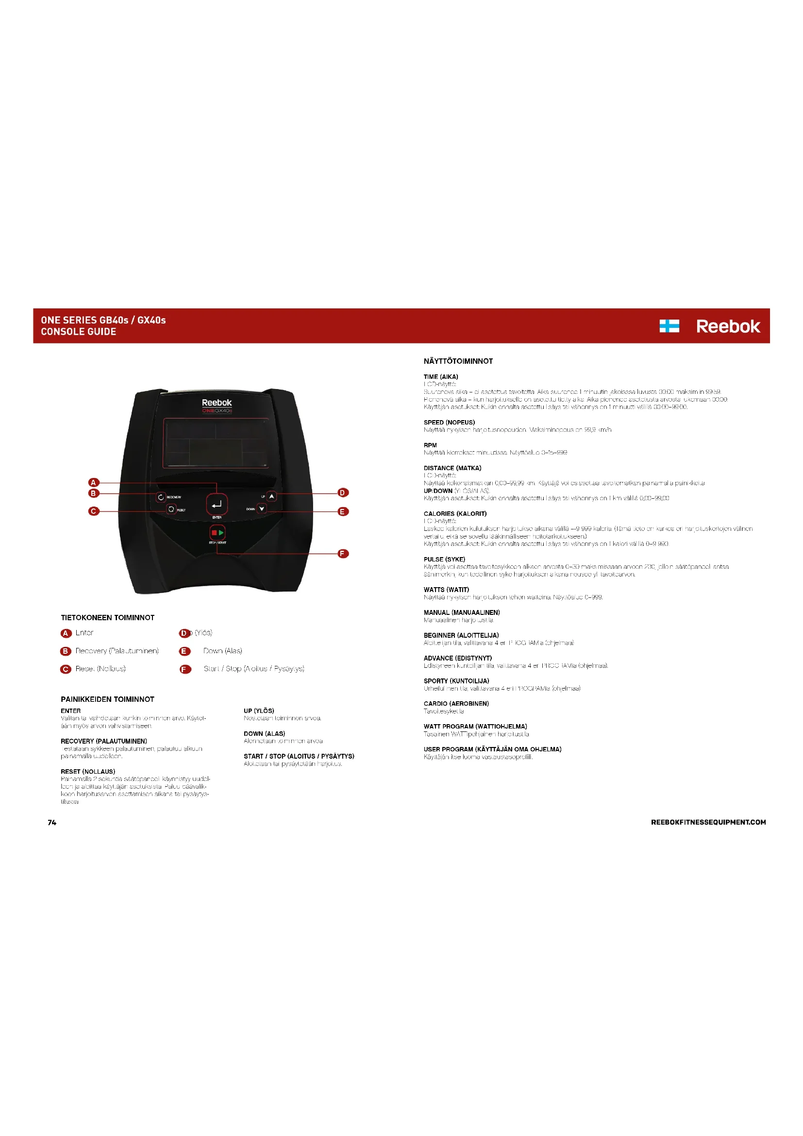 One GB40s - Crosstrainer Reebok - Ilmainen käyttöohje ja opas