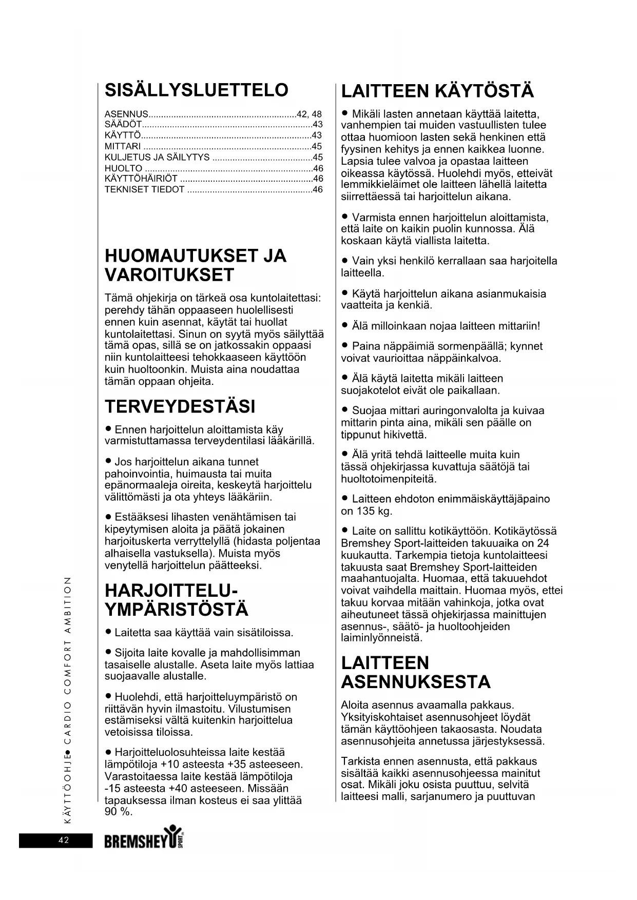 KÄYTTÖOHJE Cardio Comfort Ambition Bremshey