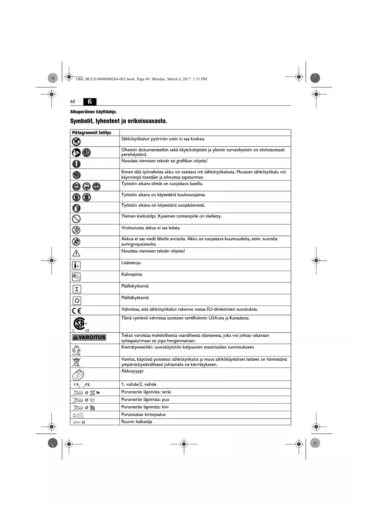 ![]() | Vahvistaa, että sähkötyökalun rakenne vastaa EU-direktlivien suosituksla. | |