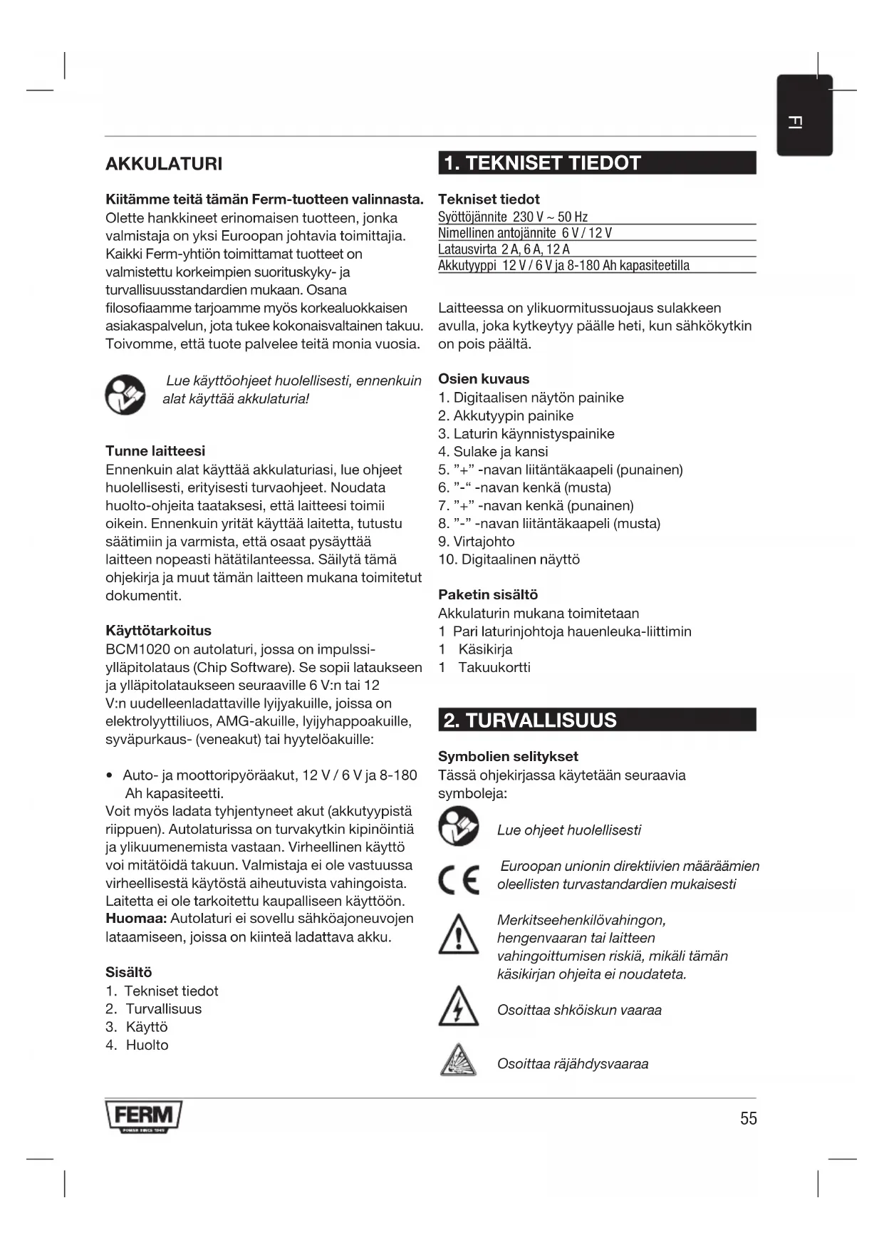 BCM1020 - Akkulaturi Ferm - Ilmainen käyttöohje ja opas