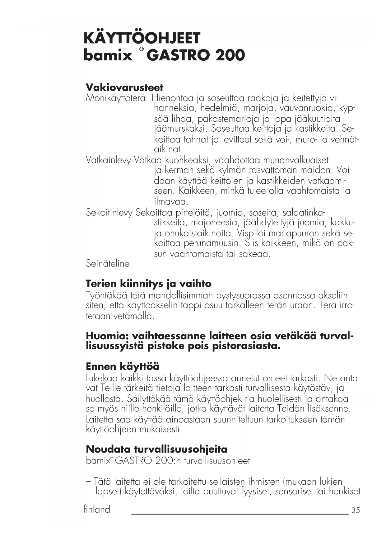KÄYTTÖOHJE Gastro G200 BAMIX