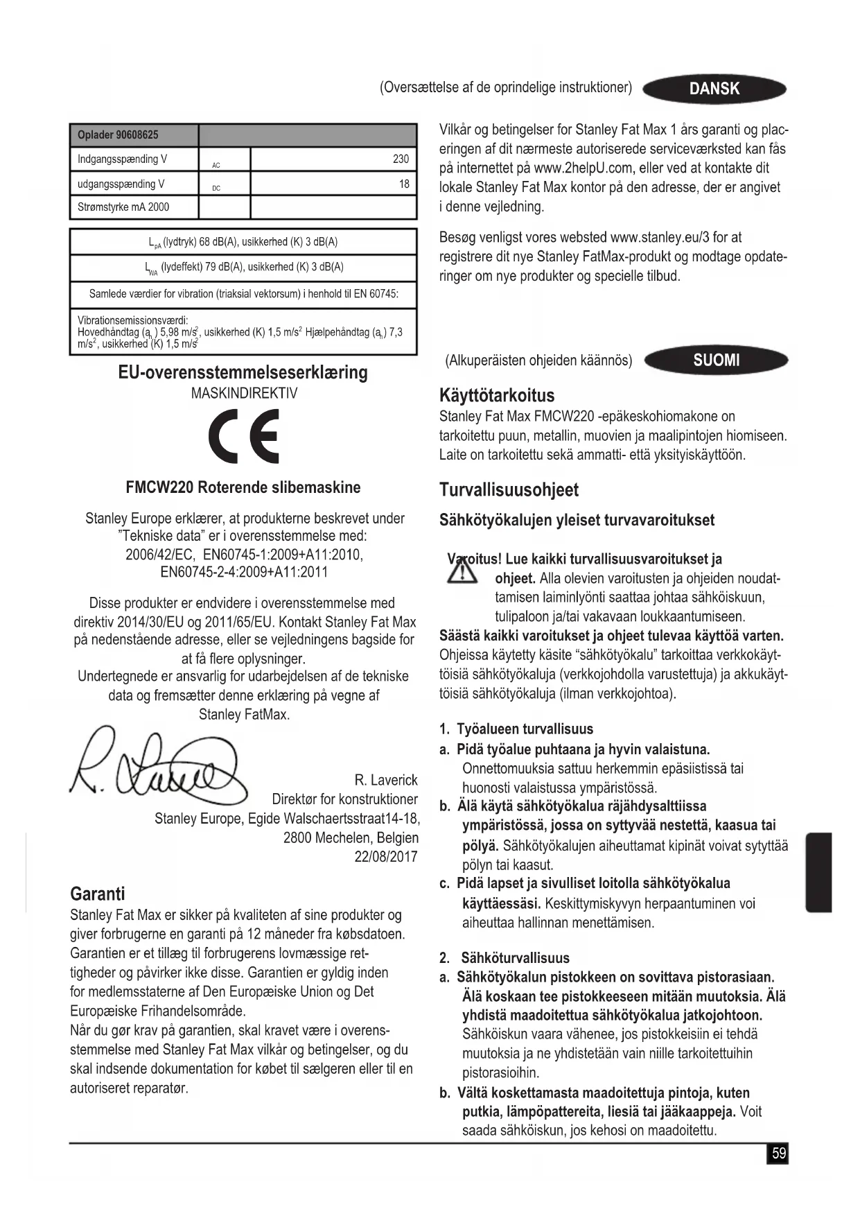 Allekirjoittanut vastaa teknisten tietojen kokoamisesta ja antaa tämän ilmoituksen Stanley FatMaxin puolesta.