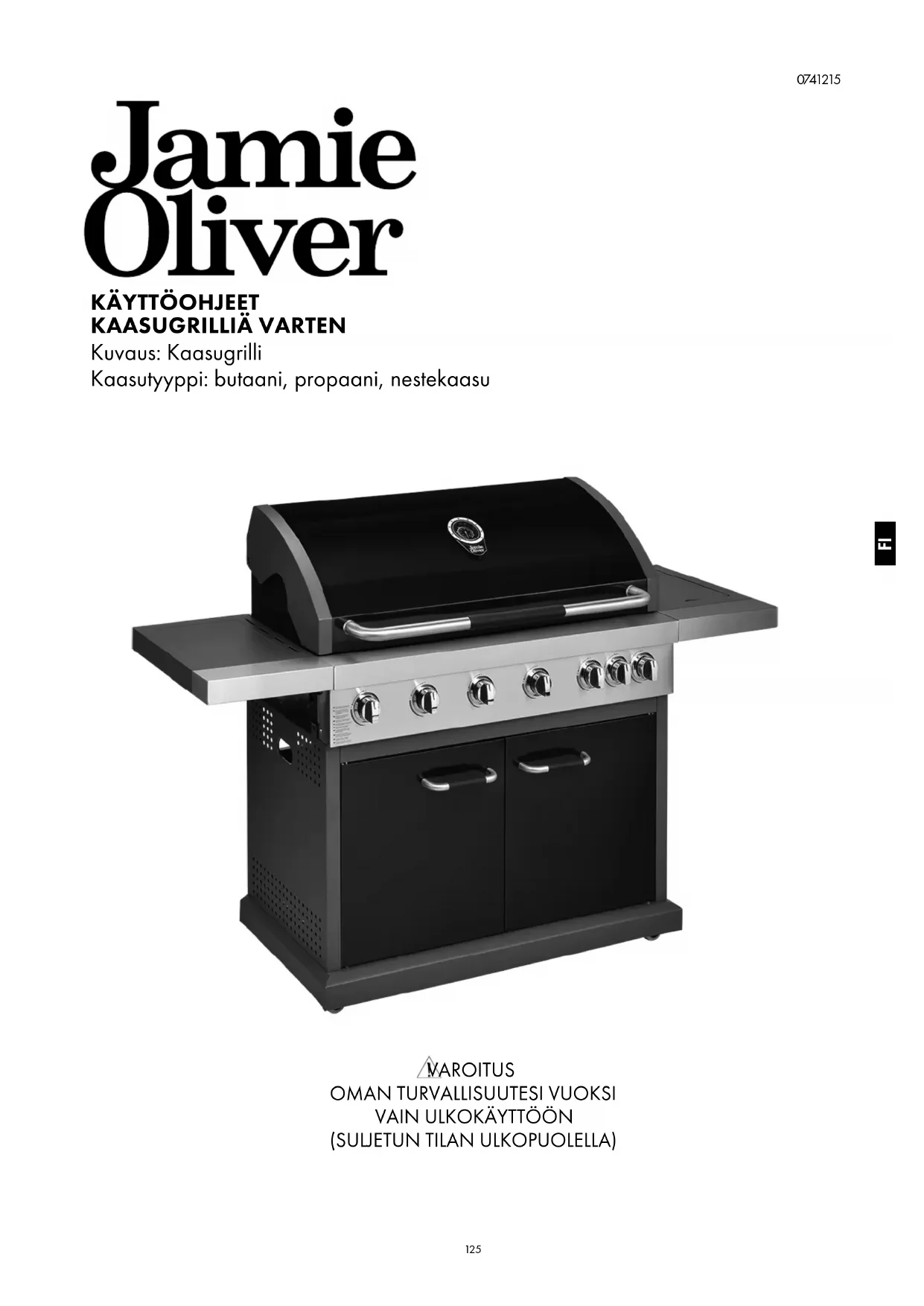 Lue nämä ohjeet huolellisesti ja varmista, että grilli asennetaan ja kootaan ja että sitä hoidetaan ja huolletaan näiden ohjeiden mukaisesti. Näiden ohjeiden noudattamatta jättäminen saattaa aiheuttaa ruumiinvamman ja/tai omaisuusvahingon. Jos sinulla on kysyttävää grillin kokoamisesta tai käytöstä, ota yhteyttä jälleenmyyjään, kaasutoimittajaan, valmistajaan, merkin edustajaan tai etsi tukea internetsivuilta www.jamieoliverbbq.com. Huomautuksia käyttäjälle: