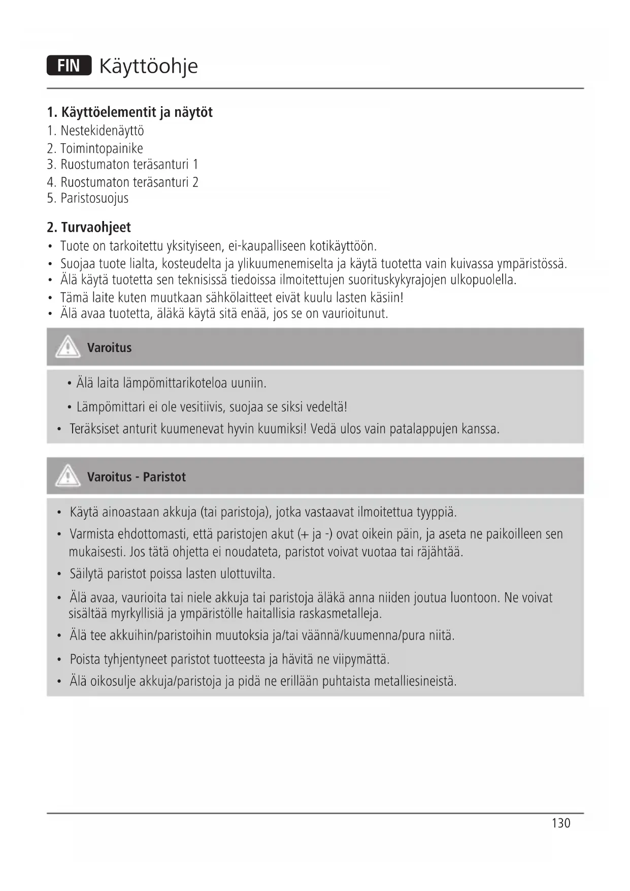 - Teräksiset anturit kuumenevat hyvin kuumiksi! Vedä ulos vain patalappujen kanssa. Varoitus - Paristot