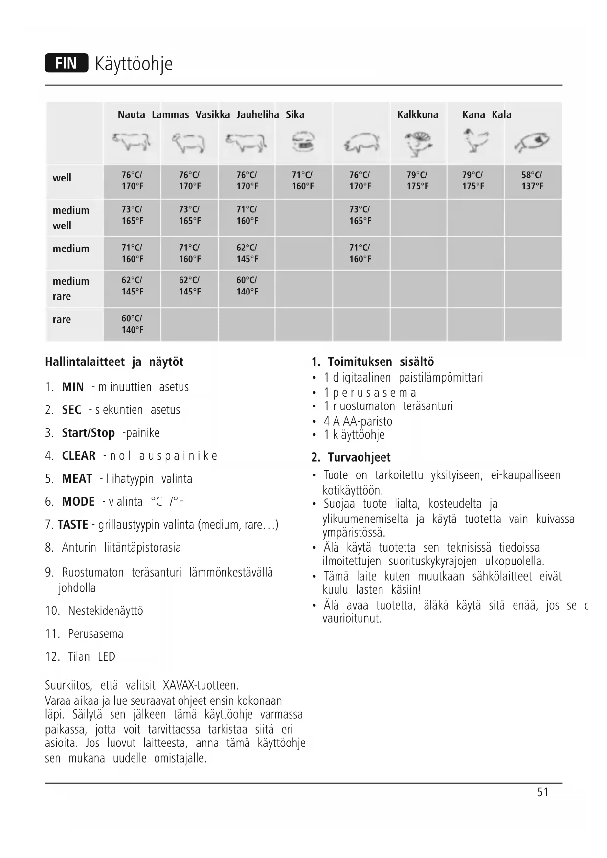 Suurkiitos, että valitsit XAVAX-tuotteen. Varaaaikaa ja lue seuraavat ohjeet ensin kokonaan läpi. Säilytä sen jälkeen tämä käyttöohje varmassa paikassa, jotta voit tarvittaessa tarkistaa siitä eri asioita. Jos luovut laitteesta, anna tämä käyttöohje sen mukana uudelle omistajalle.