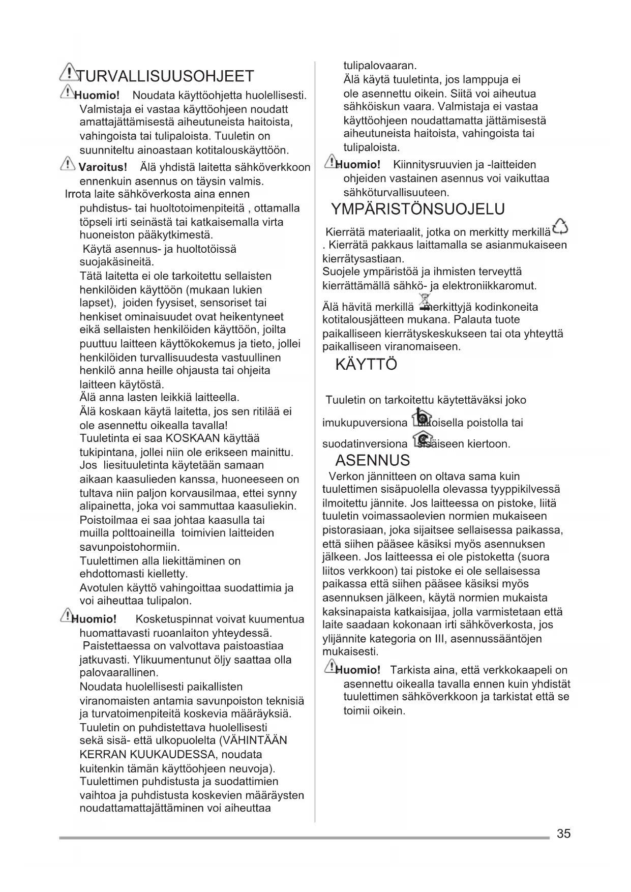 Liesituuletin Käyttöohje 35