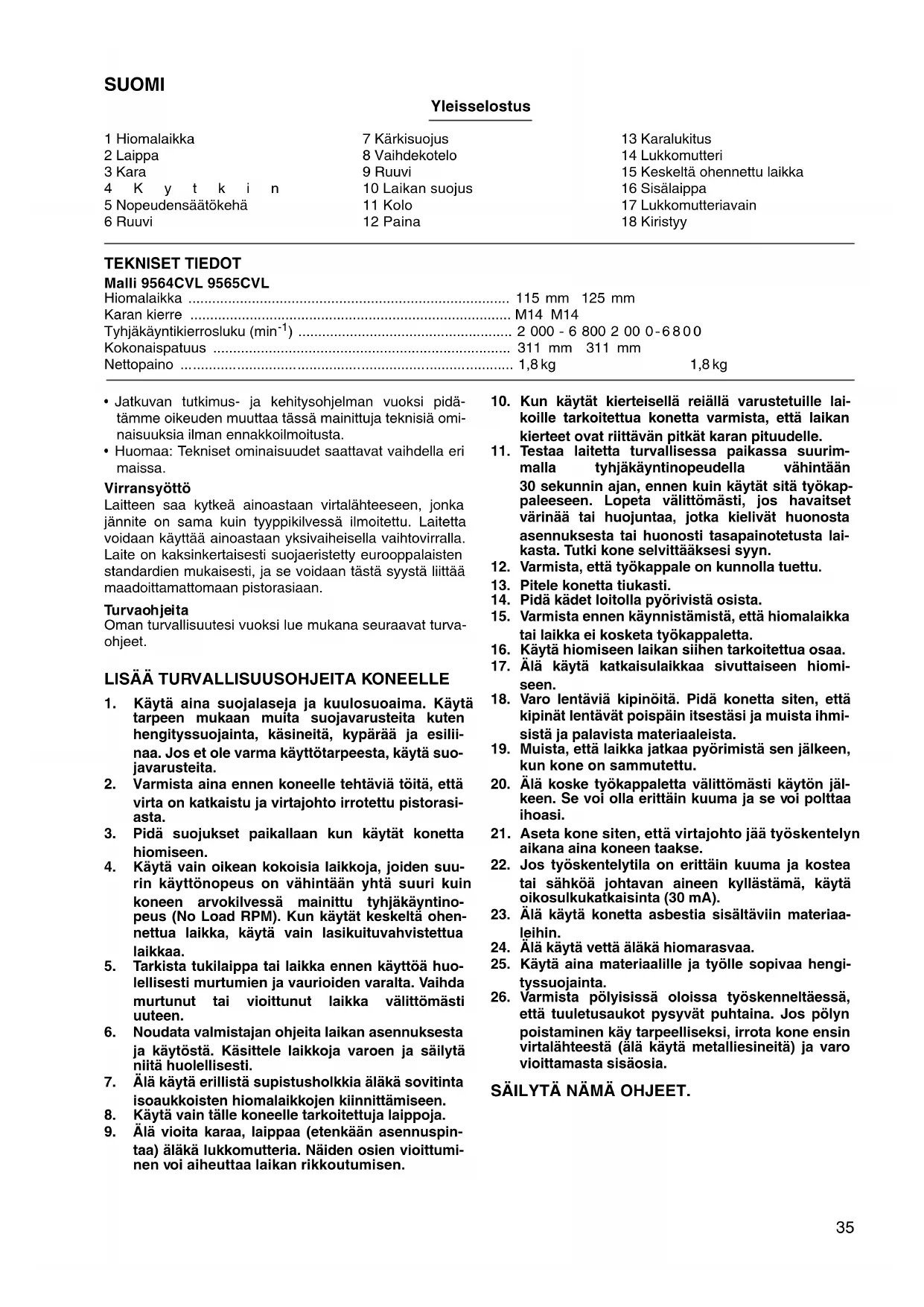 KÄYTTÖOHJE 9564CVL MAKITA
