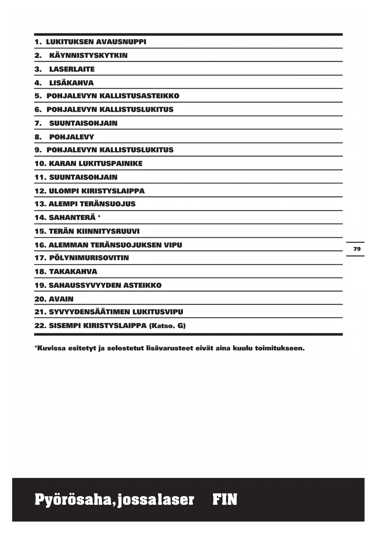 *Kuvissa esitetyt ja selostetut lisävarusteet eivät aina kuulu toimitukseen.pyörösaha, jossa laser fIN