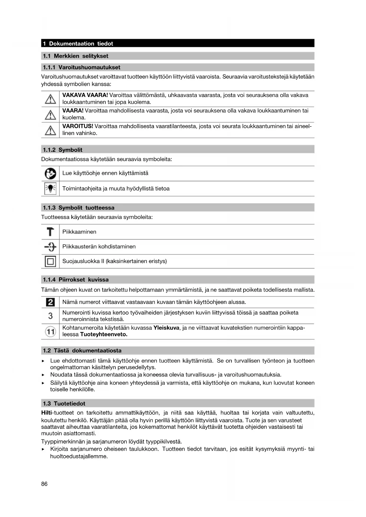 1.1.1 Varoitushuomautukset