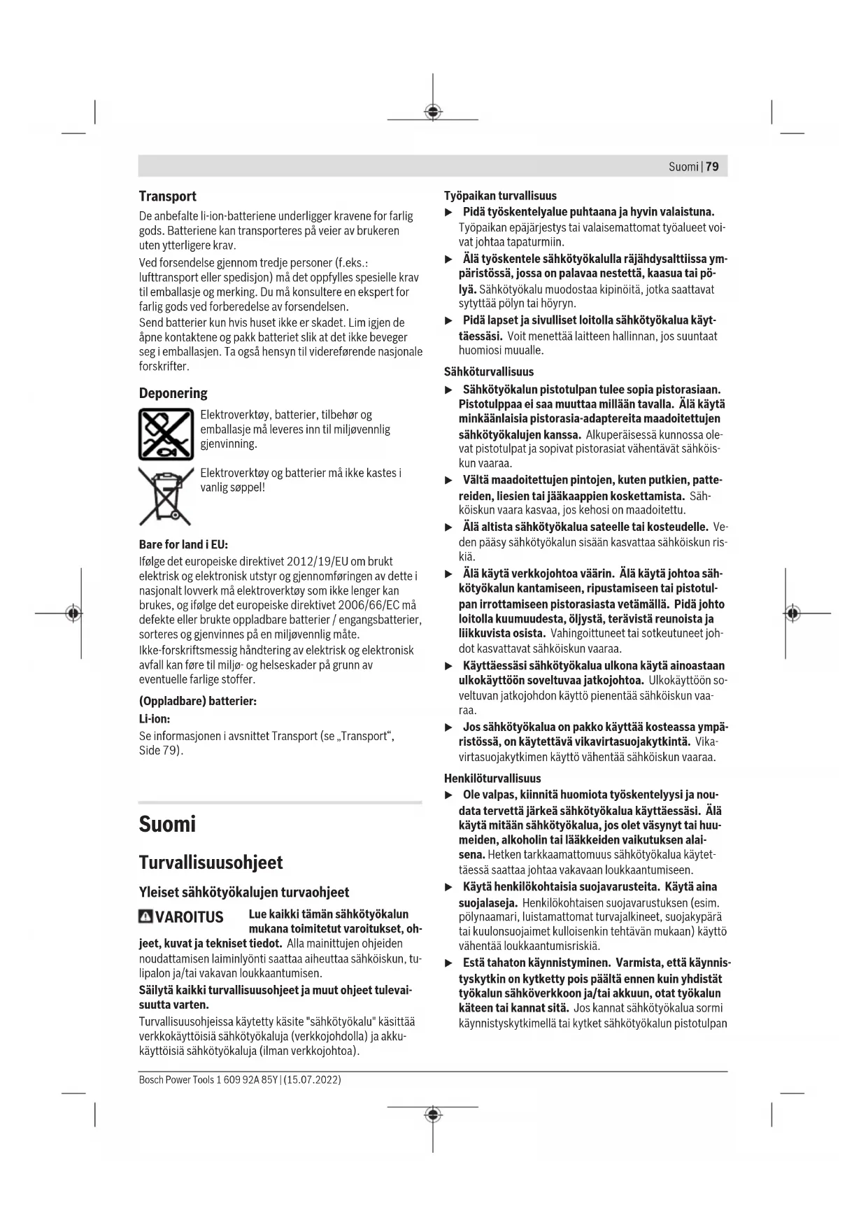Kuvassa näkyvä tai tekstissä mainittu lisätarvike ei kuulu vakiovarustukseen. Koko tarvikevalikoiman voit katsoa tar- vikeohjelmastamme. Bosch Power Tools 1 609 92A 85Y | (15.07.2022)82 | Suomi Tekniset tiedot Akkupistosaha GST12V-70 Tuotenumero 3601EA10.. Nimellinen jännite V= 12 Tyhjäkäyntikierrosluku n₀