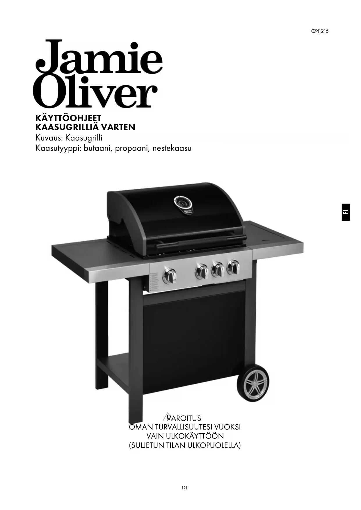 Lue nämä ohjeet huolellisesti ja varmista, että grilli asennetaan ja kootaan ja että sitä hoidetaan ja huolletaan näiden ohjeiden mukaisesti. Näiden ohjeiden noudattamatta jättäminen saattaa aiheuttaa ruumiinvamman ja/tai omaisuusvahingon. Jos sinulla on kysyttävää grillin kokoamisesta tai käytöstä, ota yhteyttä jälleenmyyjään, kaasutoimittajaan, valmistajaan, merkin edustajaan tai etsi tukea internetsivuilta www.jamieoliverbbq.com. Huomautuksia käyttäjälle: