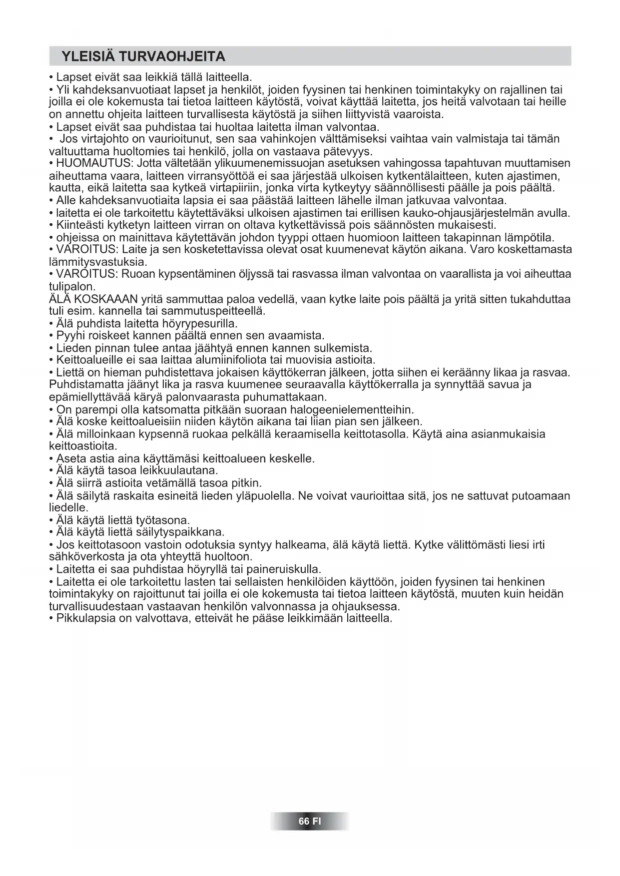- Lapset eivat saa puhdistaa tai huoltta laitetta ilman valvontaa.