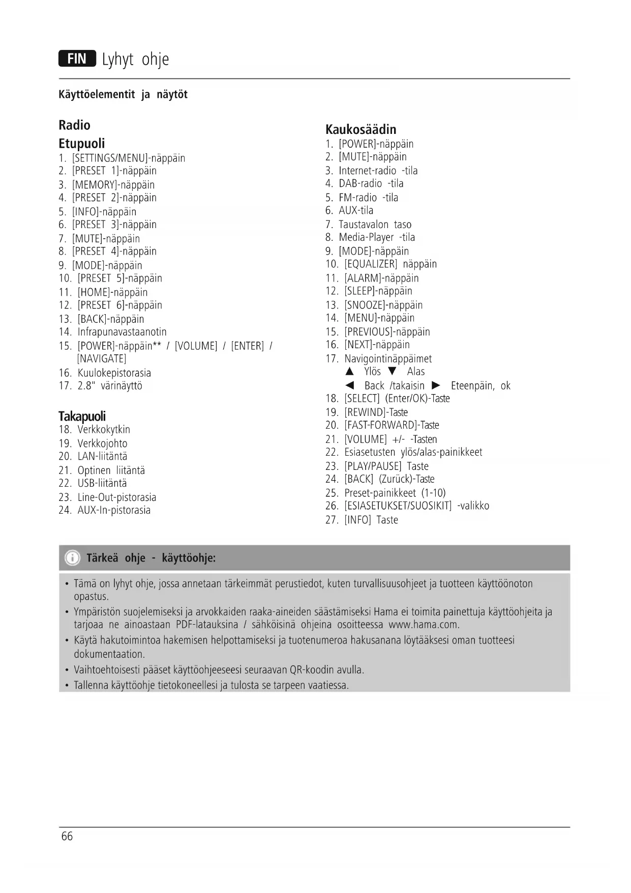 Tärkeä ohje - käyttöohje: