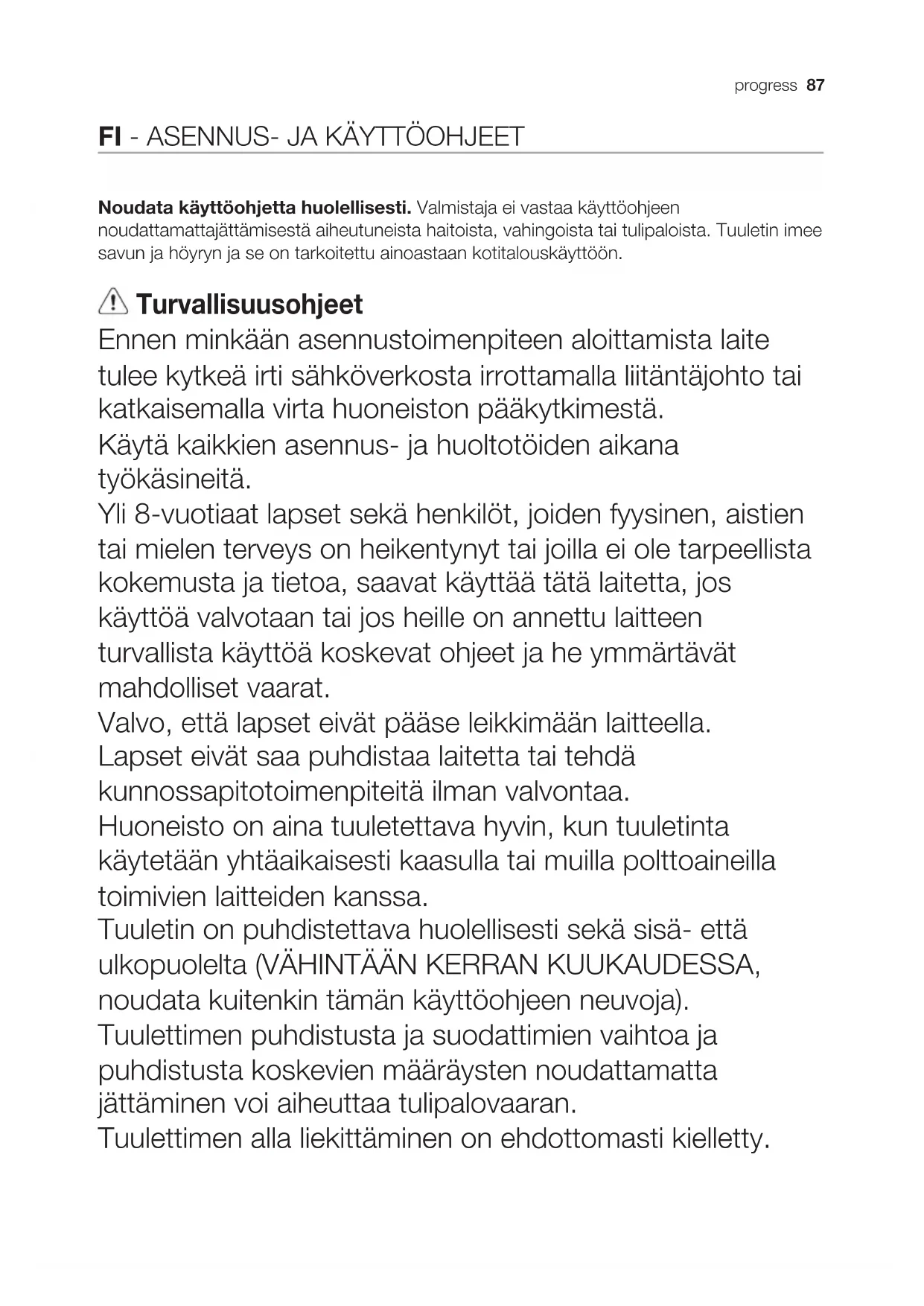 PDI9075E - Liesituuletin PROGRESS - Ilmainen käyttöohje ja opas