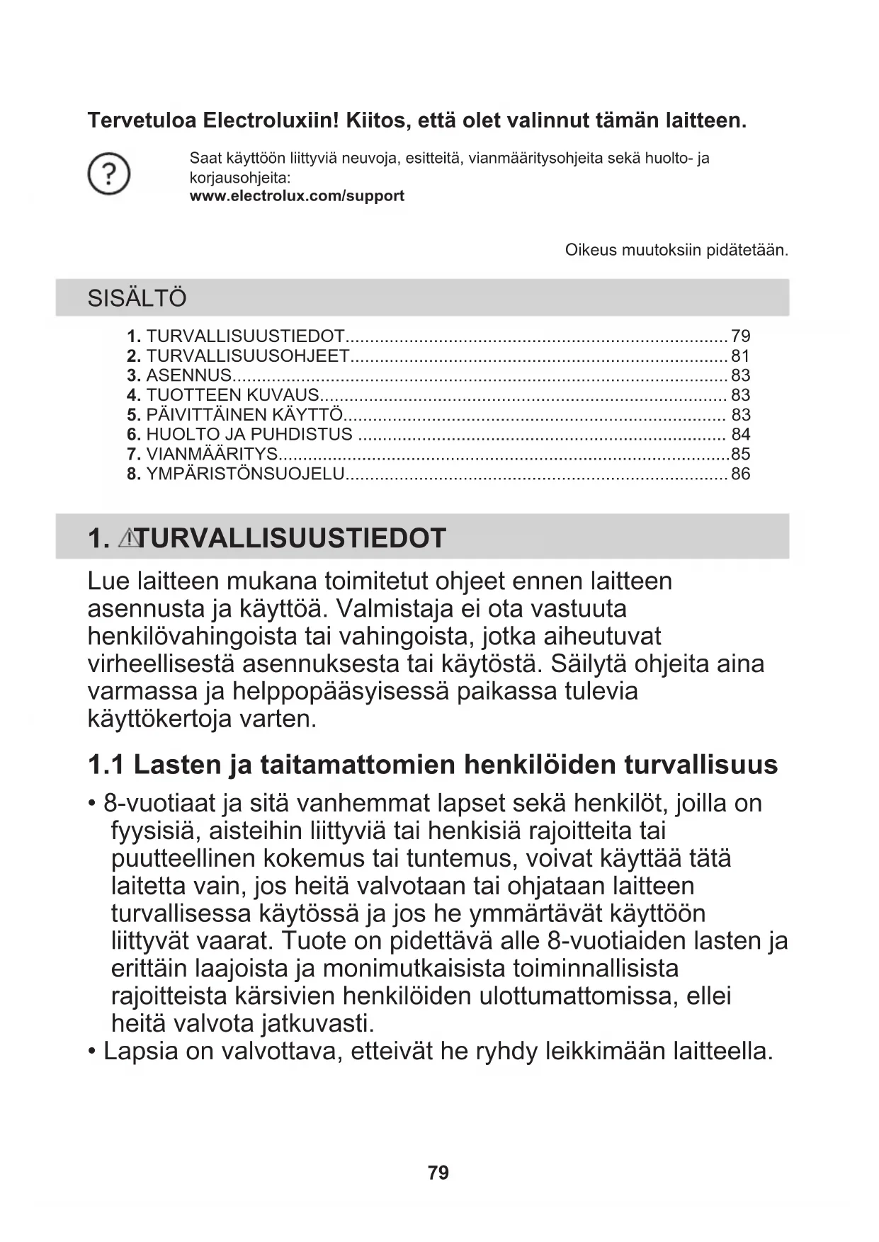 1.1 Lasten ja taitamattomien henkilöiden turvallisuus