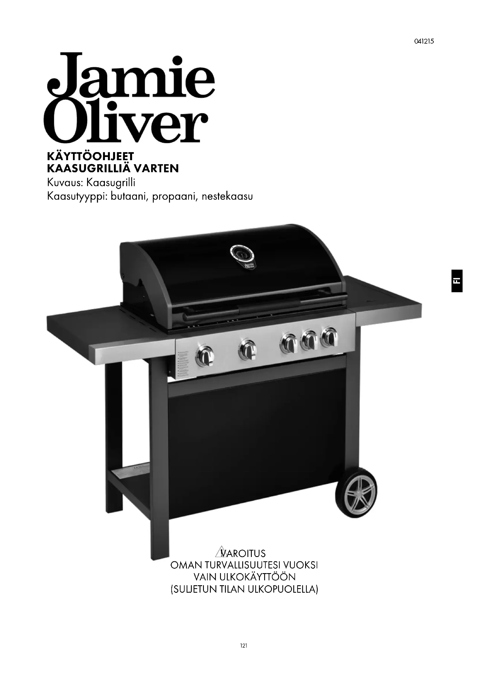 Lue nämä ohjeet huolellisesti ja varmista, että grilli asennetaan ja kootaan ja että sitä hoidetaan ja huolletaan näiden ohjeiden mukaisesti. Näiden ohjeiden noudattamatta jättäminen saattaa aiheuttaa ruumiinvamman ja/tai omaisuusvahingon. Jos sinulla on kysyttävää grillin kokoamisesta tai käytöstä, ota yhteyttä jälleenmyyjään, kaasutoimittajaan, valmistajaan, merkin edustajaan tai etsi tukea internetsivuilta www.jamieoliverbbq.com. Huomautuksia käyttäjälle: