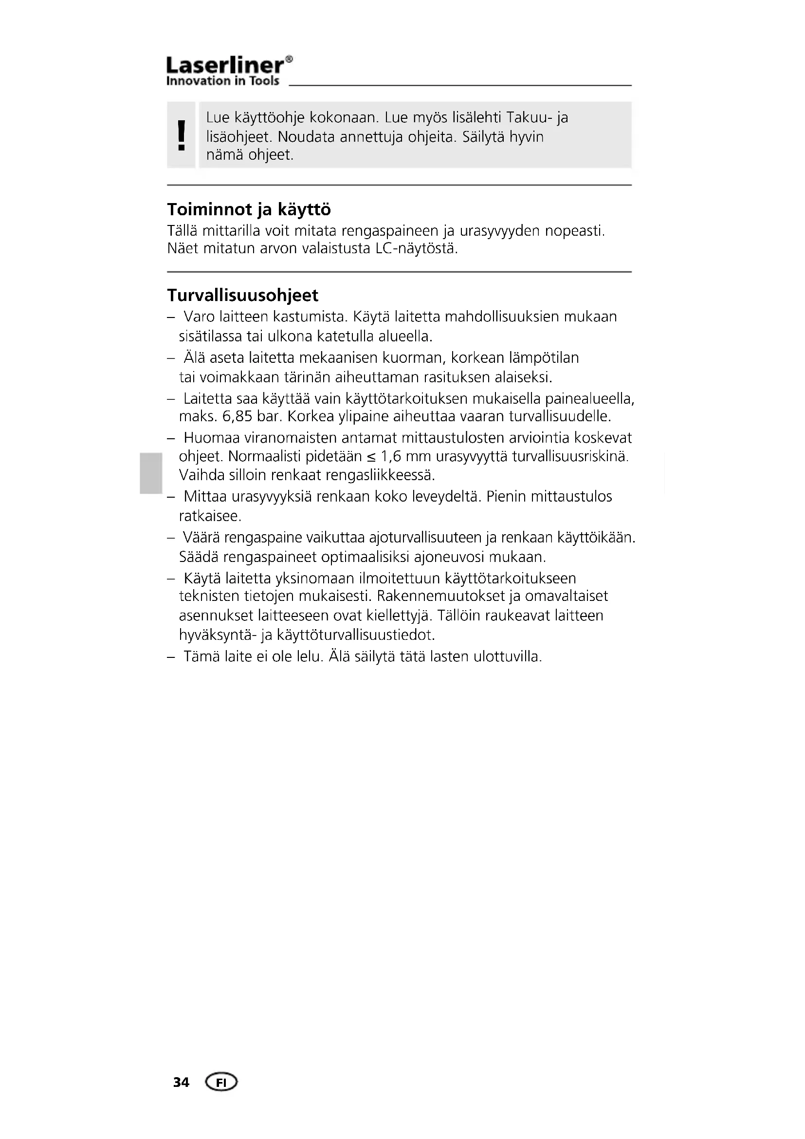 KÄYTTÖOHJE TireCheck Laserliner