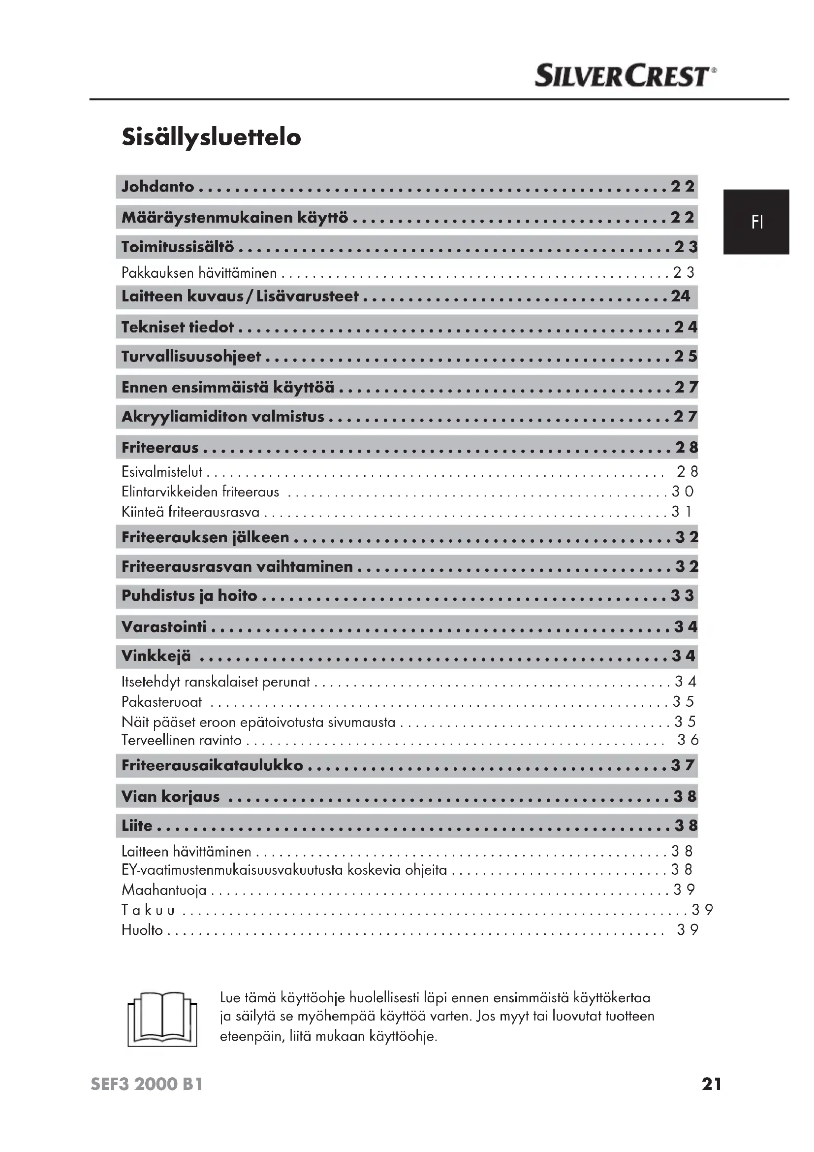 SEF3 2000 B2 - Rasvakeitin SILVERCREST - Ilmainen käyttöohje ja opas