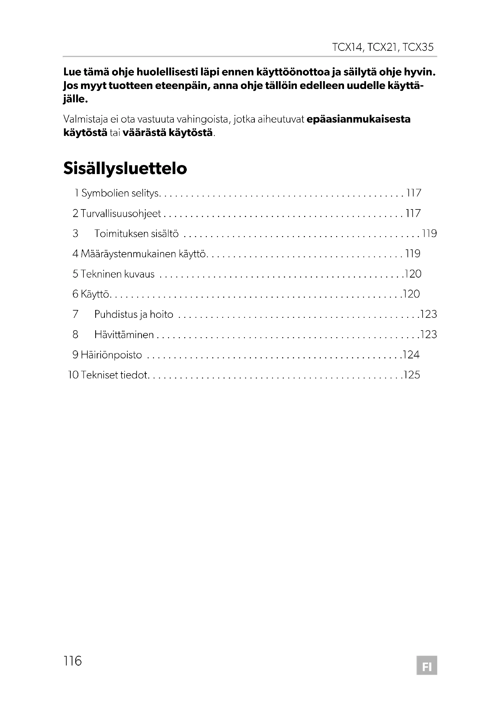 KÄYTTÖOHJE TCX 35 ZANUSSI