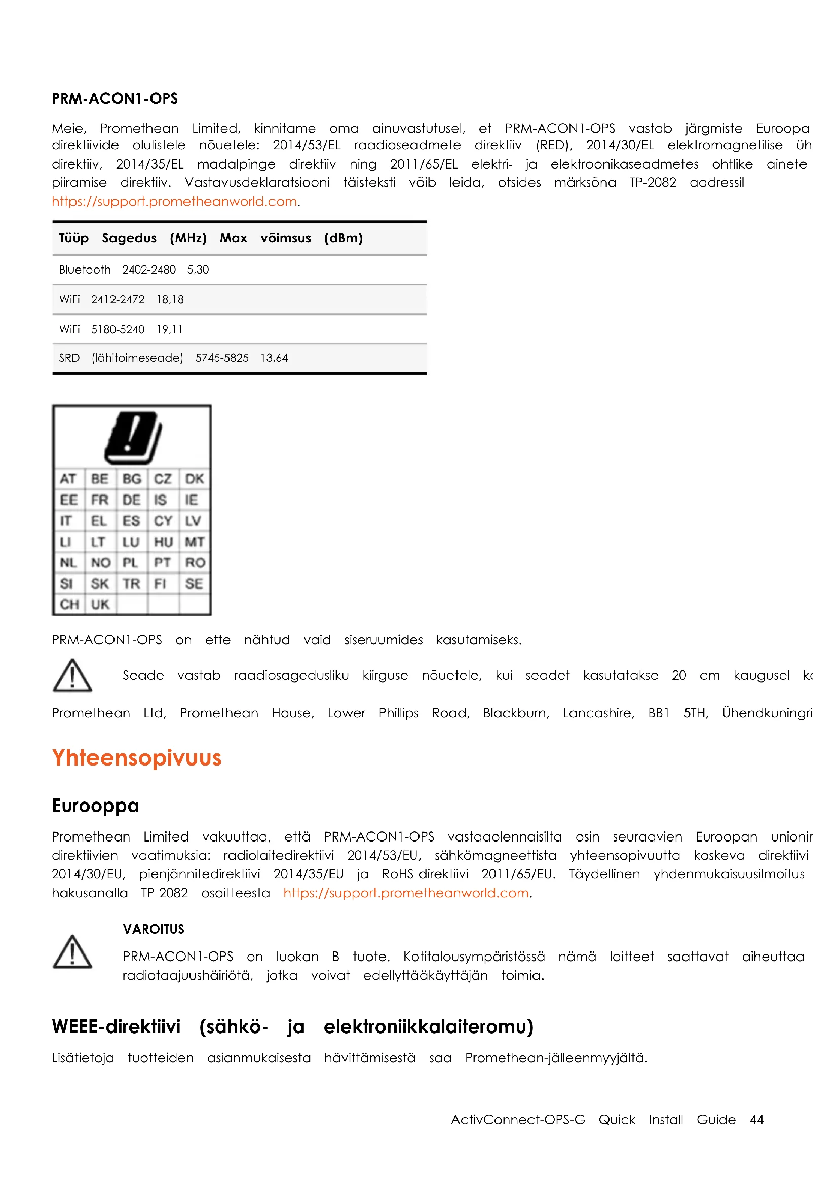 Löydä laitteen käyttöohje ilmaiseksi ActivConnect OPSG Promethean PDF-muodossa.