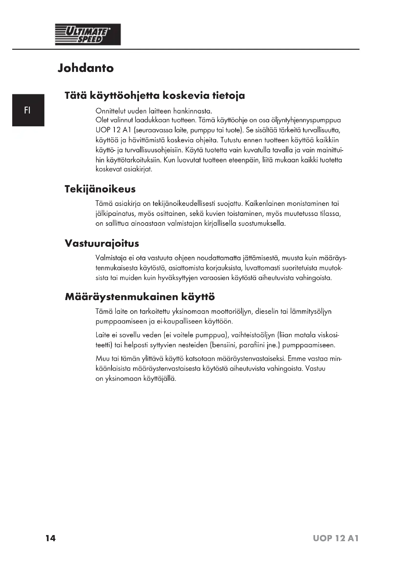 KÄYTTÖOHJE UOP 12 A1 ULTIMATE SPEED