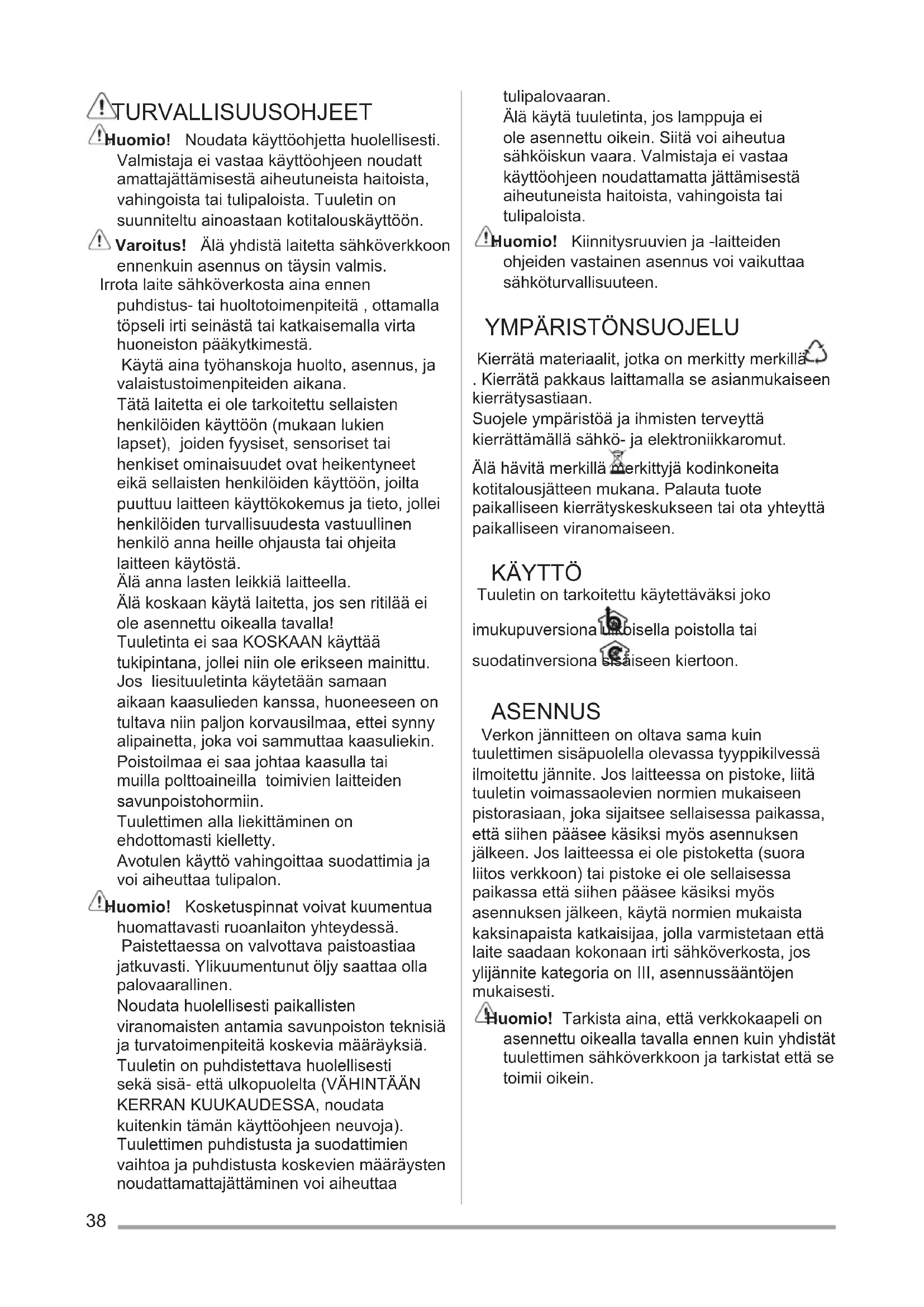 Liesituuletin Käyttöohje 38