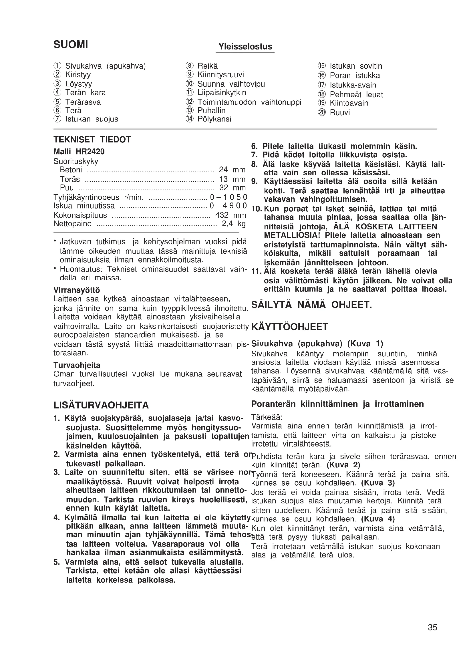 KÄYTTÖOHJE HR2420 MAKITA