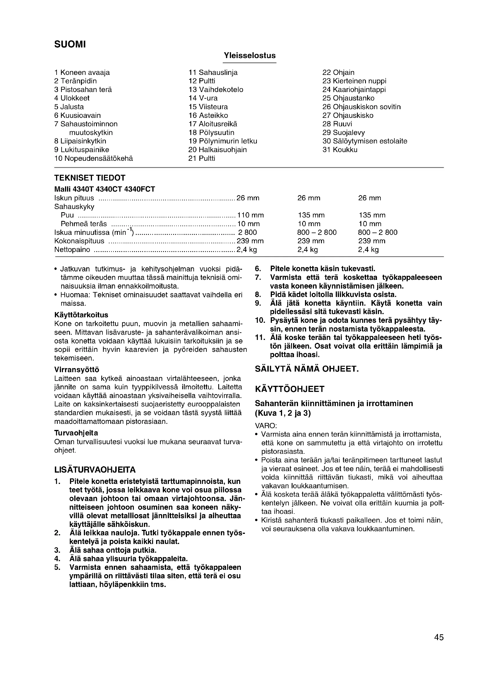 4340T - Sähkösaha MAKITA - Ilmainen käyttöohje ja opas