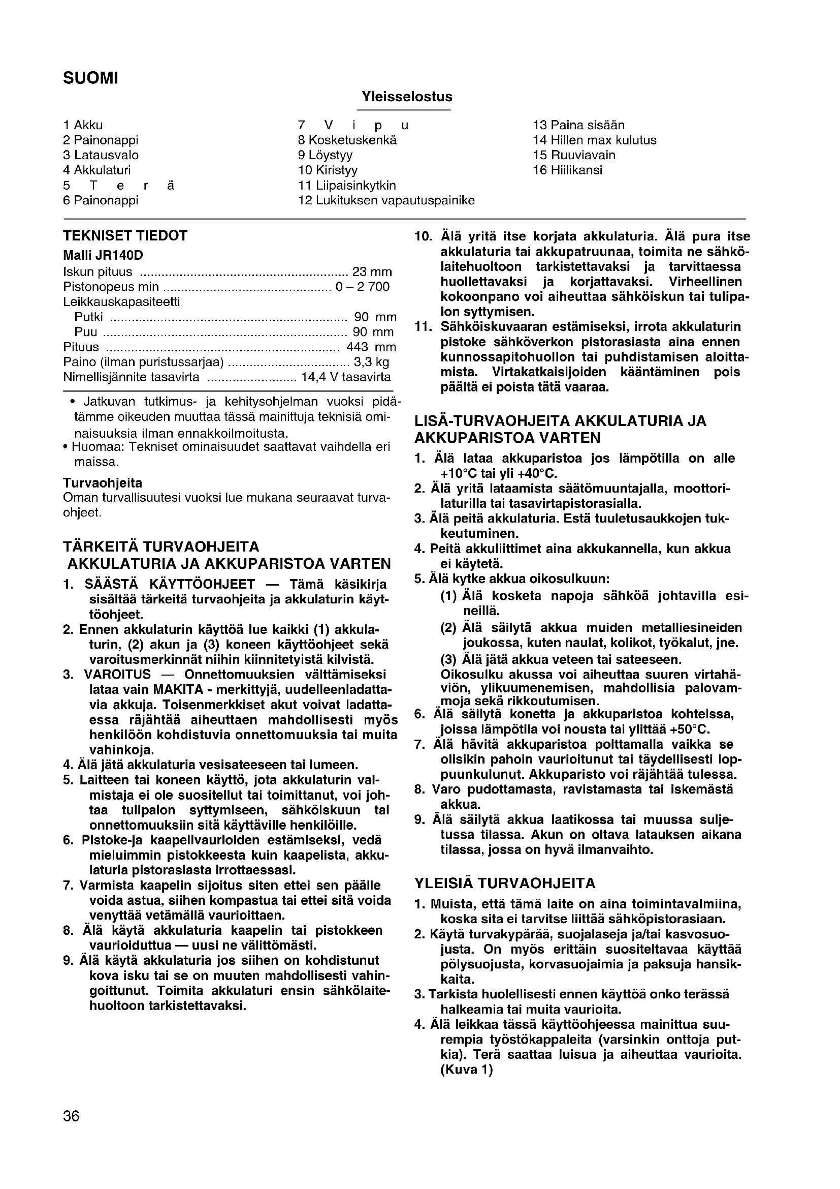 KÄYTTÖOHJE JR140D MAKITA