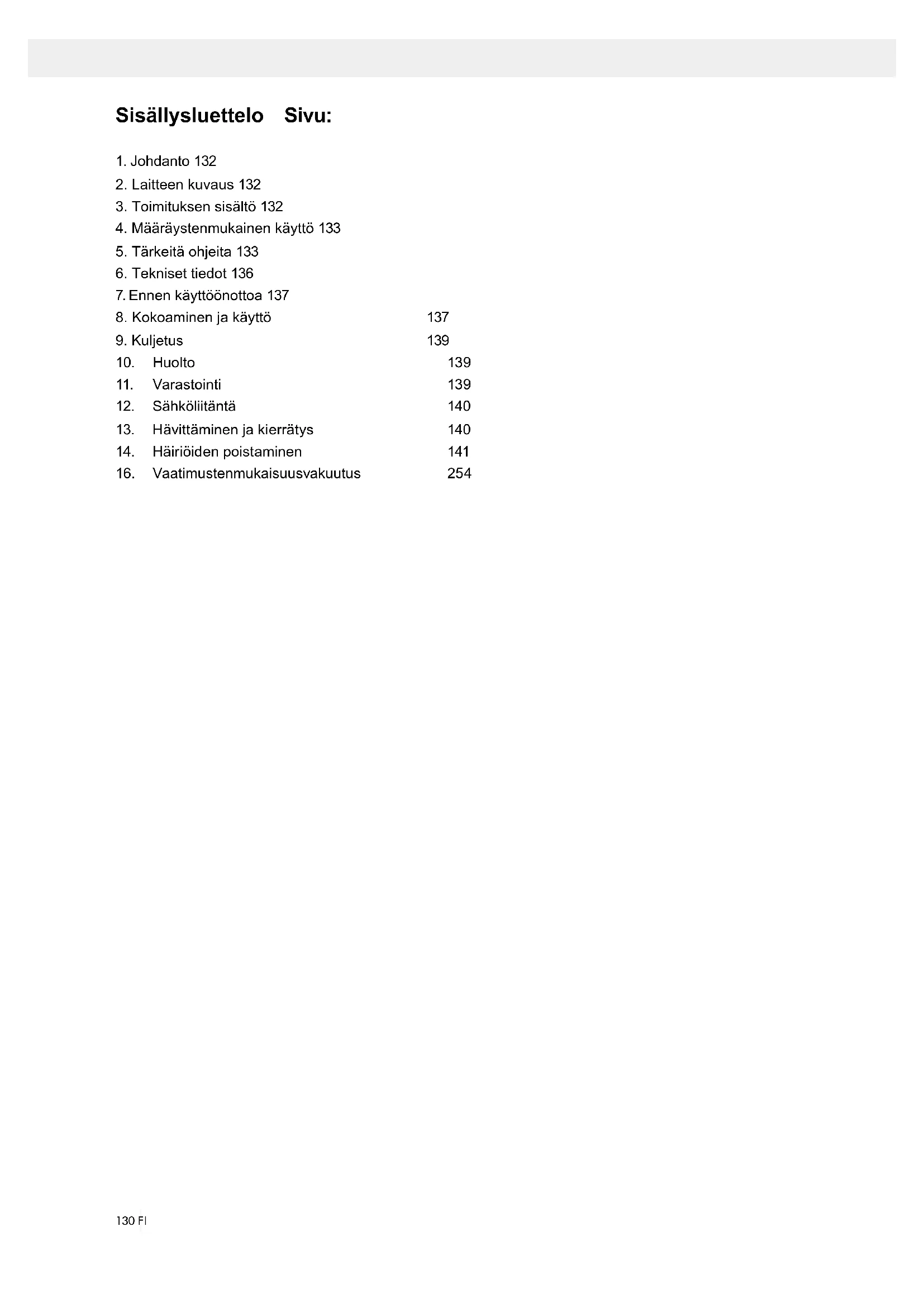 - Säilytä pakkaus jos mahdollista takuuajan päättymiseen asti.133FI HUOMIO Laite ja pakkausmateriaalit eivät ole lasten leikkikaluja! Lapset eivät saa leikkiä muovipussien, kalvojen tai pienosien kanssa! Vaarana osien joutuminen nieluun sekä tukehtumisen vaara!