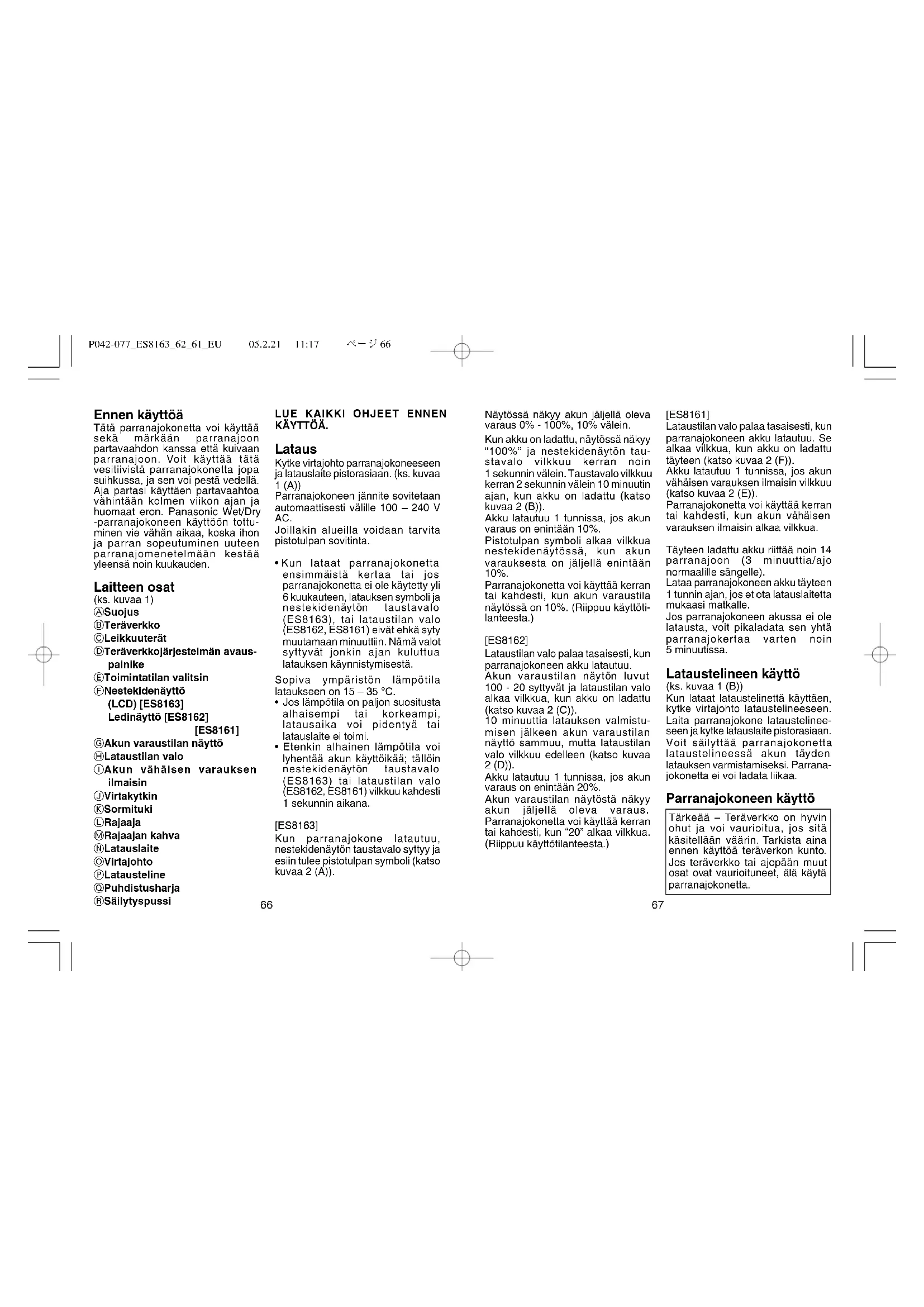 Löydä laitteen käyttöohje ilmaiseksi ES8162 PANASONIC PDF-muodossa.