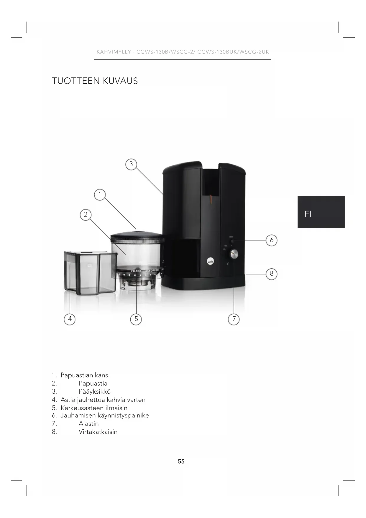 Svart Aroma CGWS130B - Kahvimylly WILFA - Ilmainen käyttöohje ja opas