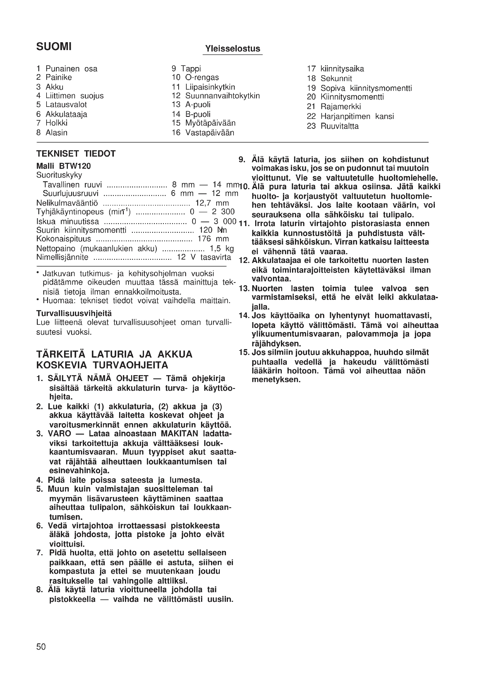 Löydä laitteen käyttöohje ilmaiseksi BTW120 MAKITA PDF-muodossa.