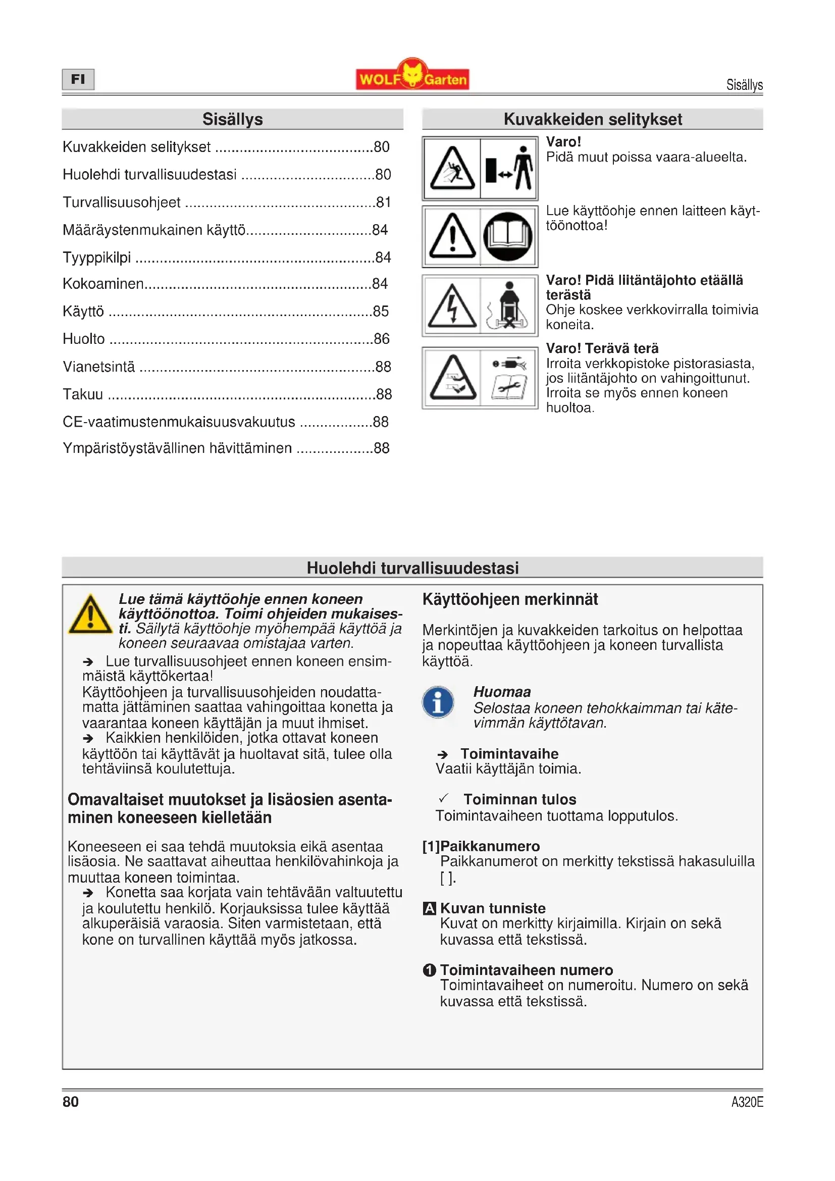 KÄYTTÖOHJE A 320 E Wolf Garten
