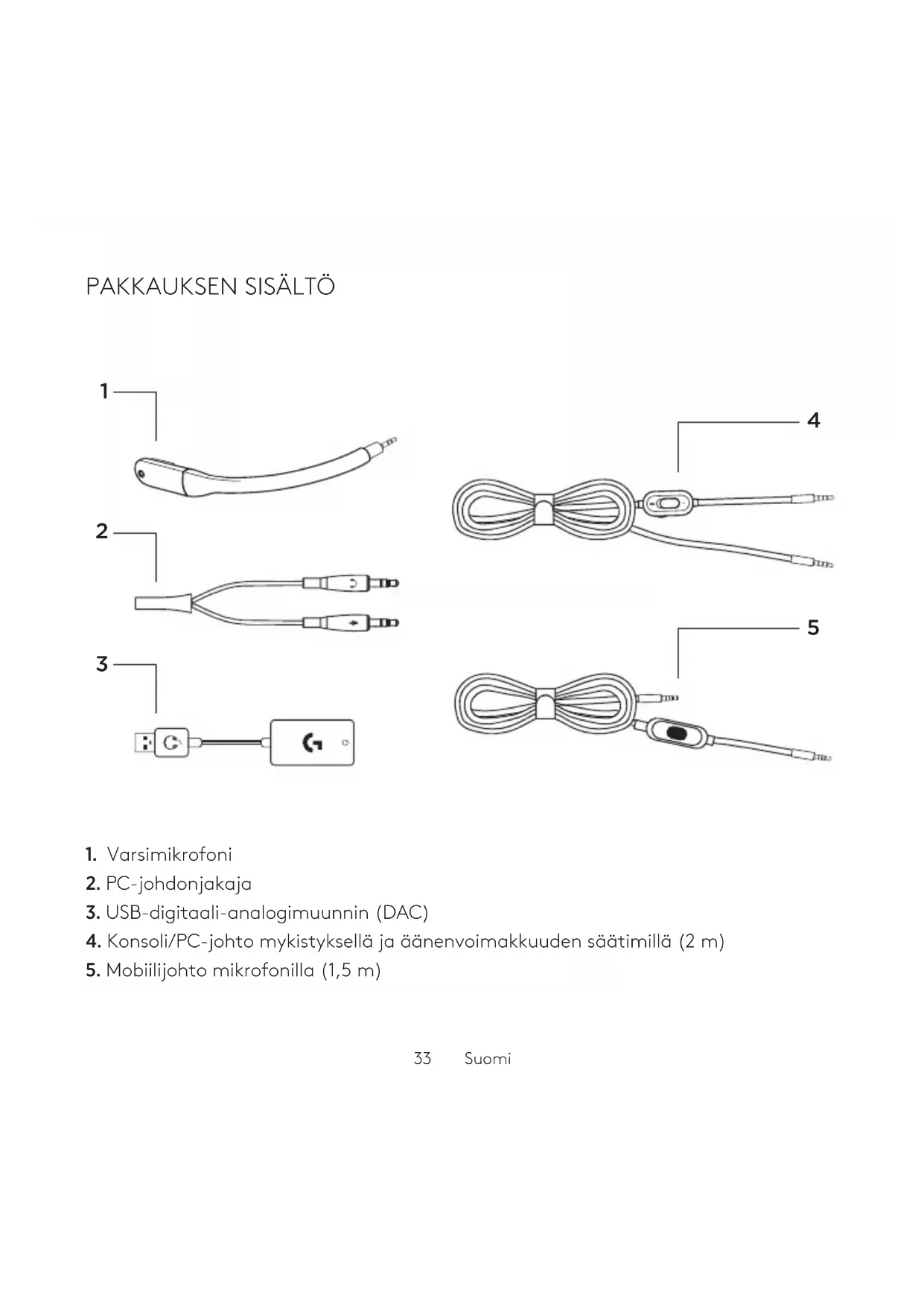 5. Mobiilijohto mikrofonilla (1,5 m)34 Suomi