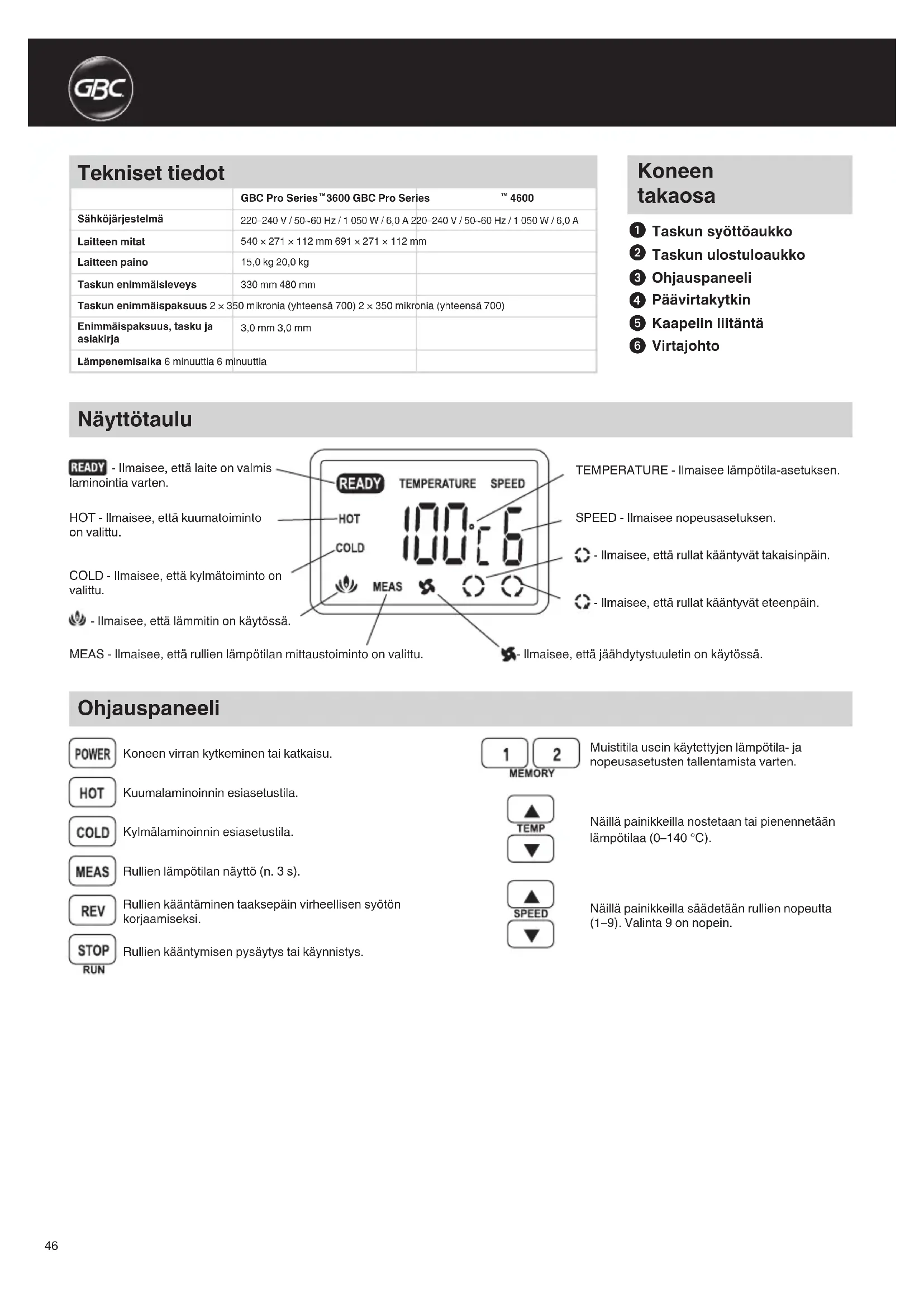 KÄYTTÖOHJE Proseries 3600 GBC