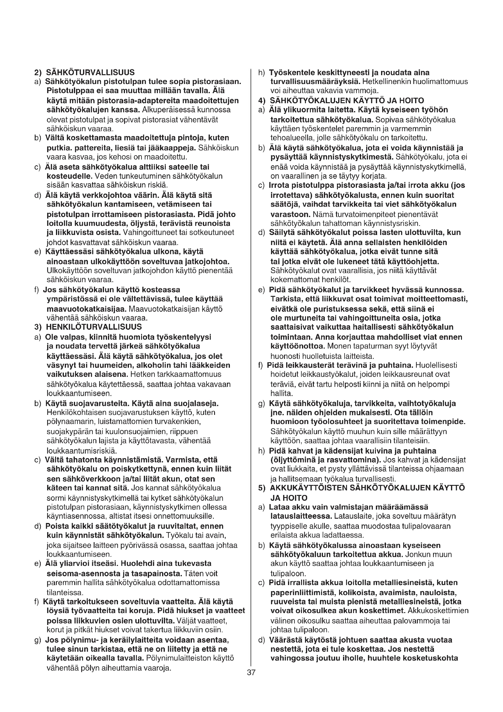 4) SÄHKÖTYÖKALUJEN KÄYTTO JA HOITO