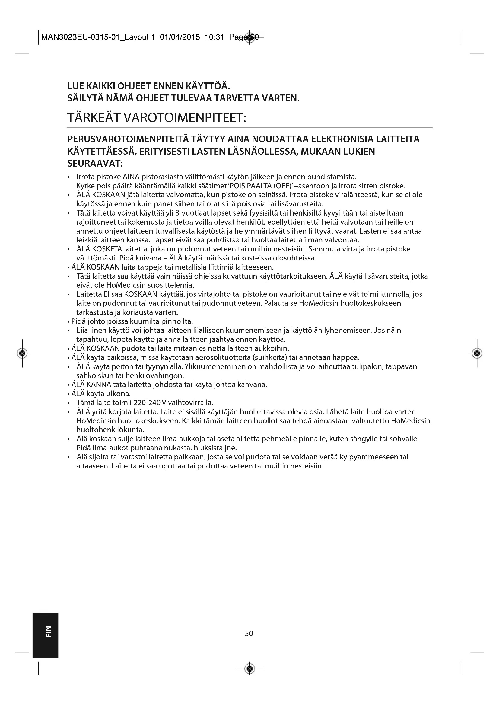 Löydä laitteen käyttöohje ilmaiseksi MAN3023A HOMEDICS PDF-muodossa.