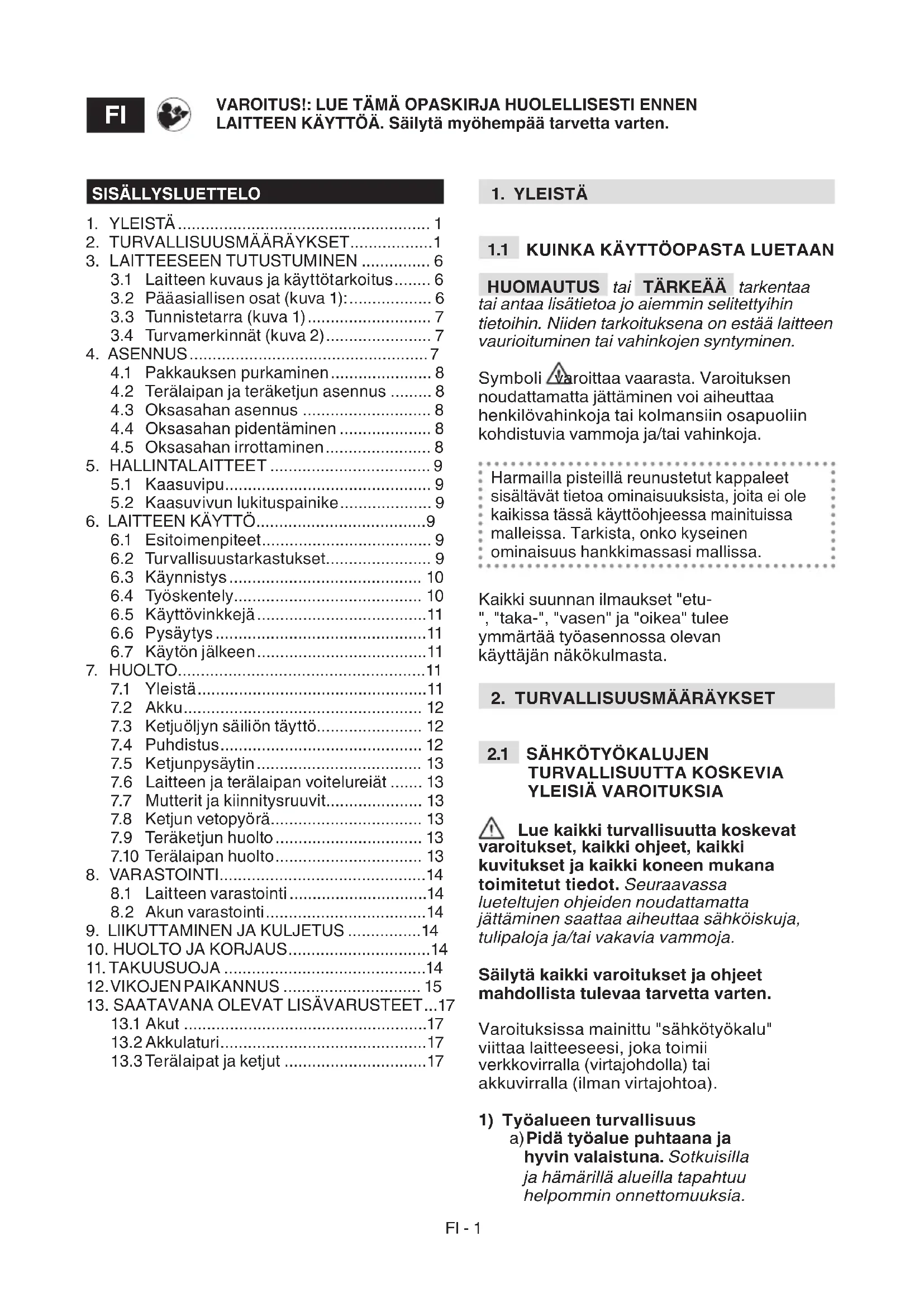 7.10 Terälaipan huolto.... 13 - VARASTOINTI....14