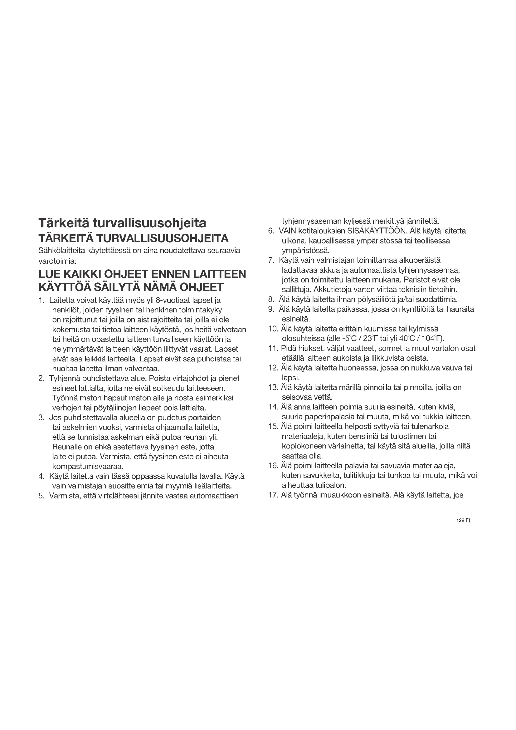 17. Älä työnnä imuaukkoon esineitä. Älä käytä laitetta, jos130FI