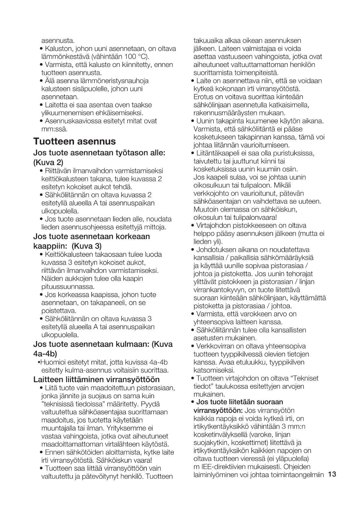 - Laite on asennettava paikallisten sähkömääräysten mukaan.