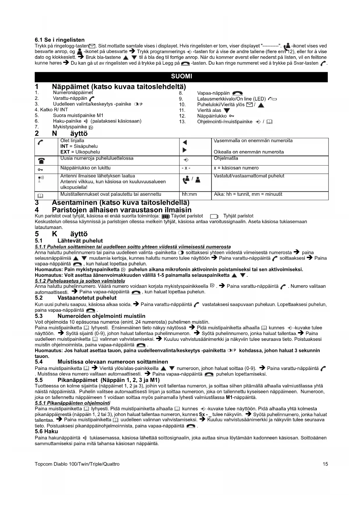 KÄYTTÖOHJE Diablo 103 Trio TOPCOM