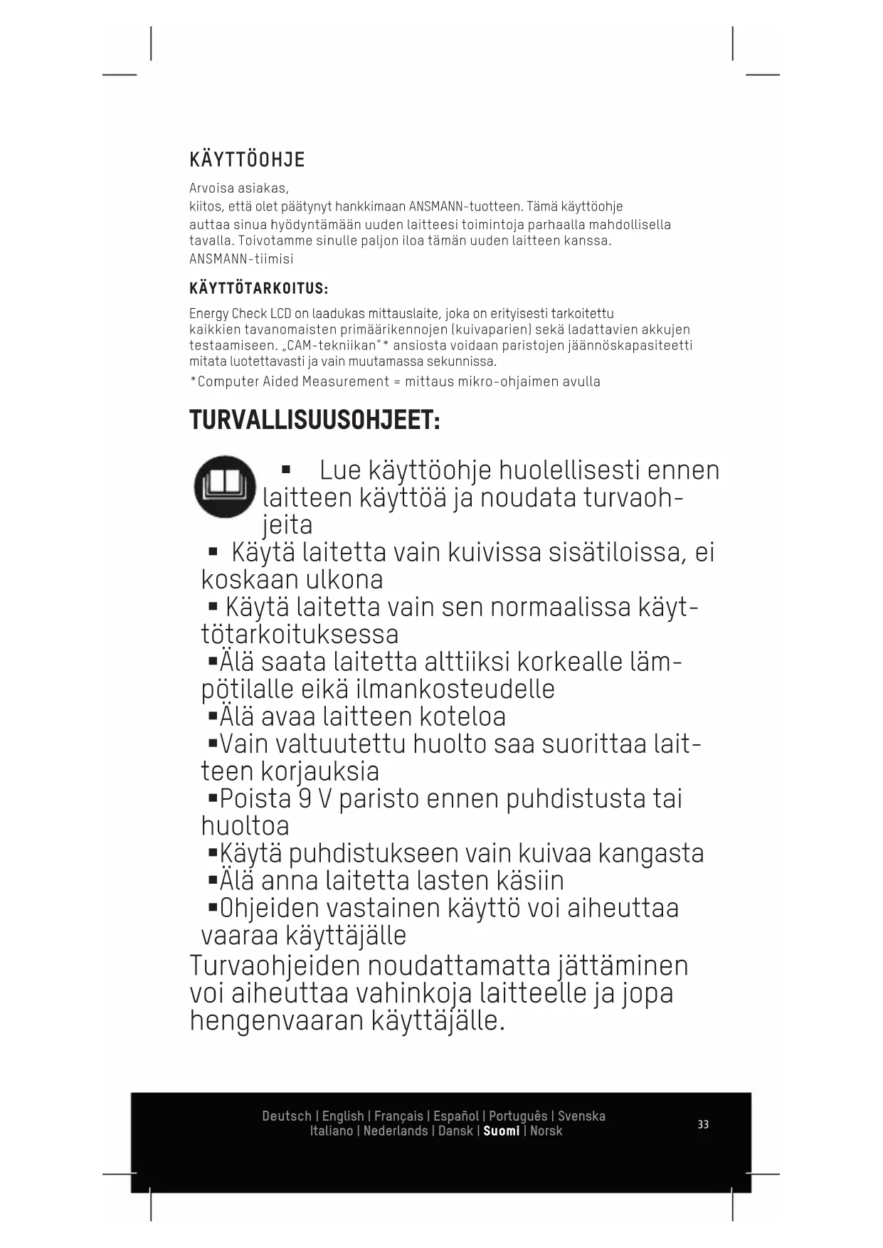 KÄYTTÖOHJE Energy Check LCD ANSMANN