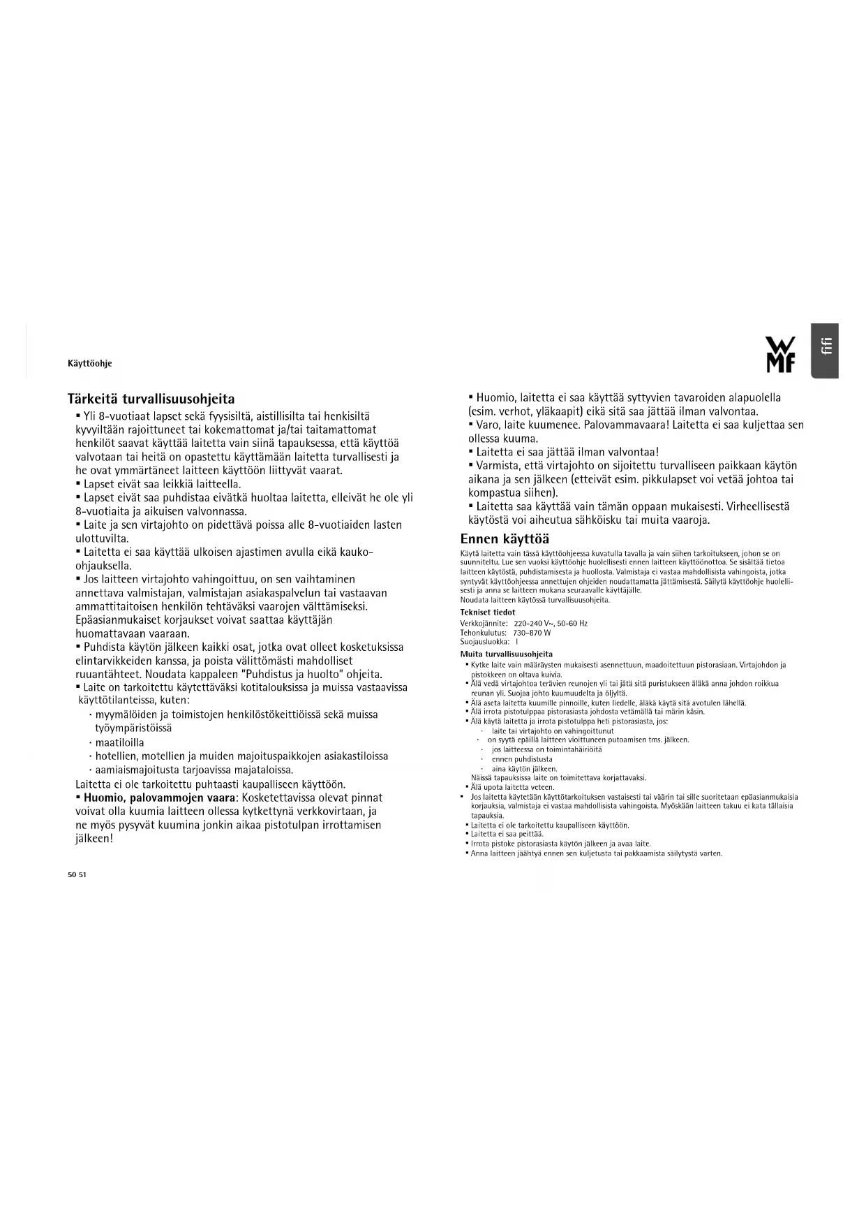- Käytä laitteen kanssa ainoastaan alkuperäisiä WMF-tarvikkeita.