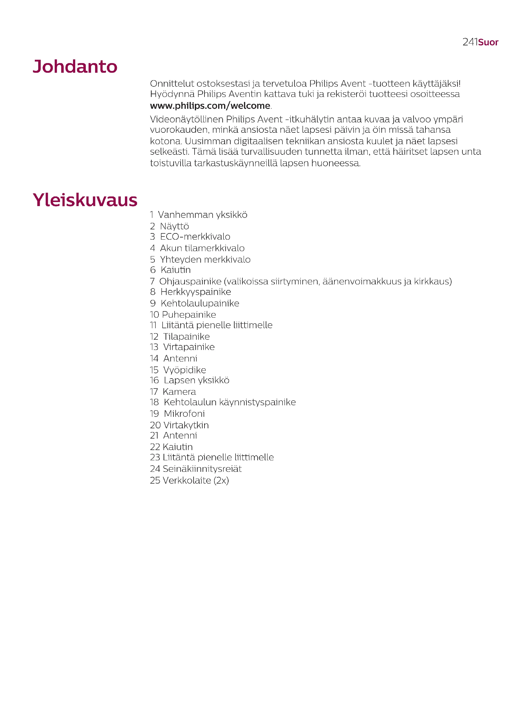 Onnittelut ostoksestasi ja tervetuloa Philips Avent -tuotteen käytäjaksil Hyödynnä Philips Aventin kattava tuki jarekisteröi tuotteesi osoitteessa www.philips.com/welcome.