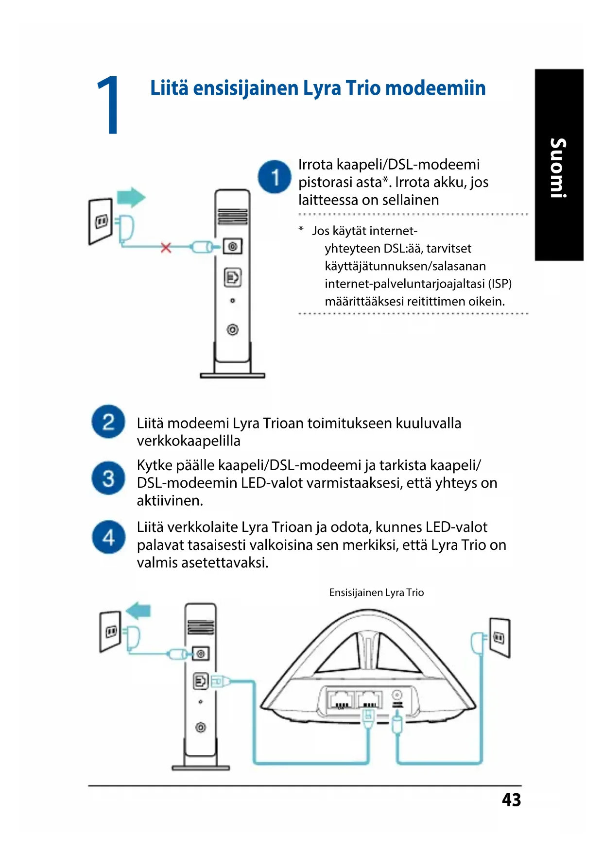 1 Liitä ensisijainen Lyra Trio modeemiin