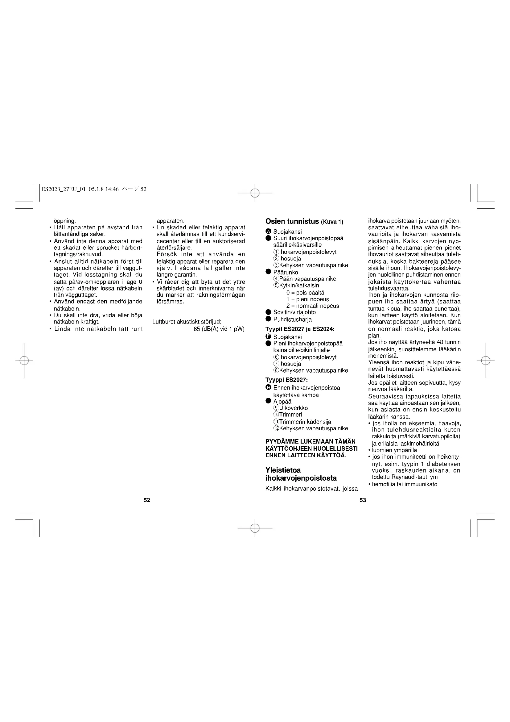 Puhdistusharja Tyypit ES2027 ja ES2024: