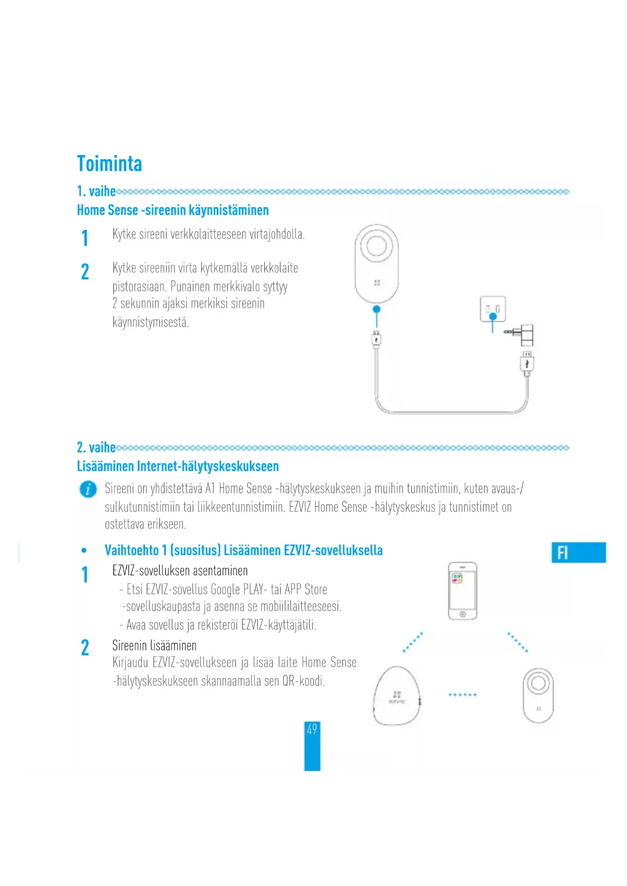 Sireenin lisääminen Kirjaudu EZVIZ-sovellukseen ja lisää laite Home Sense -hälytyskeskukseen skannaamalla sen QR-koodi.50