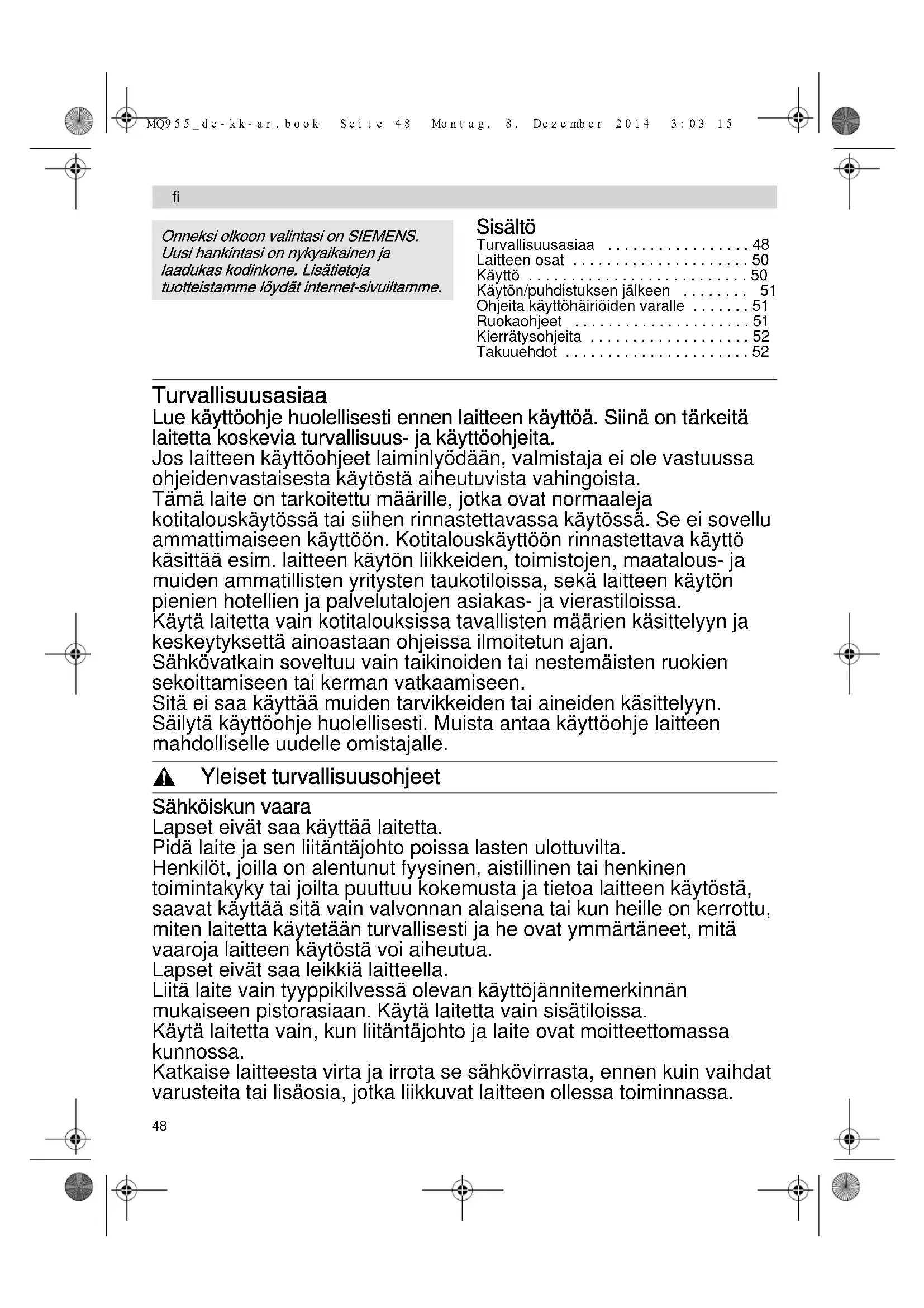 Löydä laitteen käyttöohje ilmaiseksi MQ95530N SIEMENS PDF-muodossa.