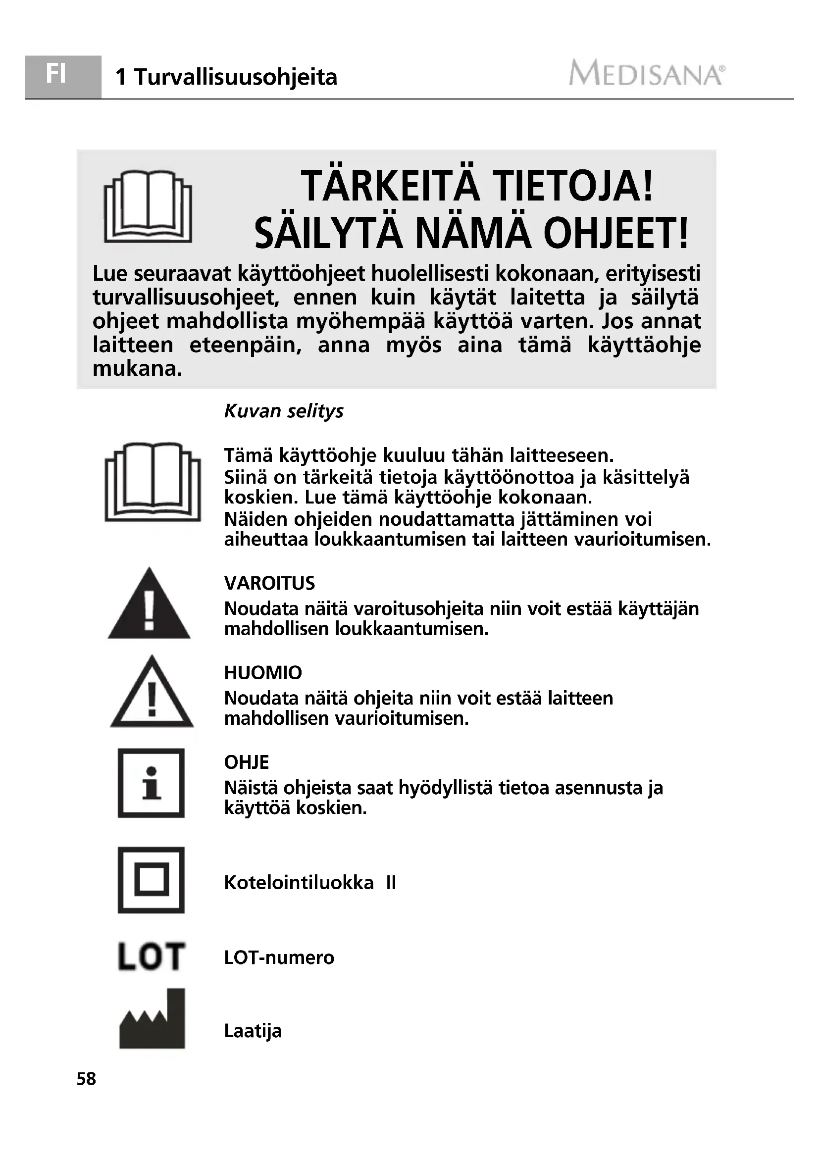 Jotta saat haluamasi tuloksen ja voit käyttää MEDISANA lämpöpatjaasi mahdollisimman kauan, suosittelemme, että luet alla olevat käyttö- ja hoitoohjeet huolellisesti.